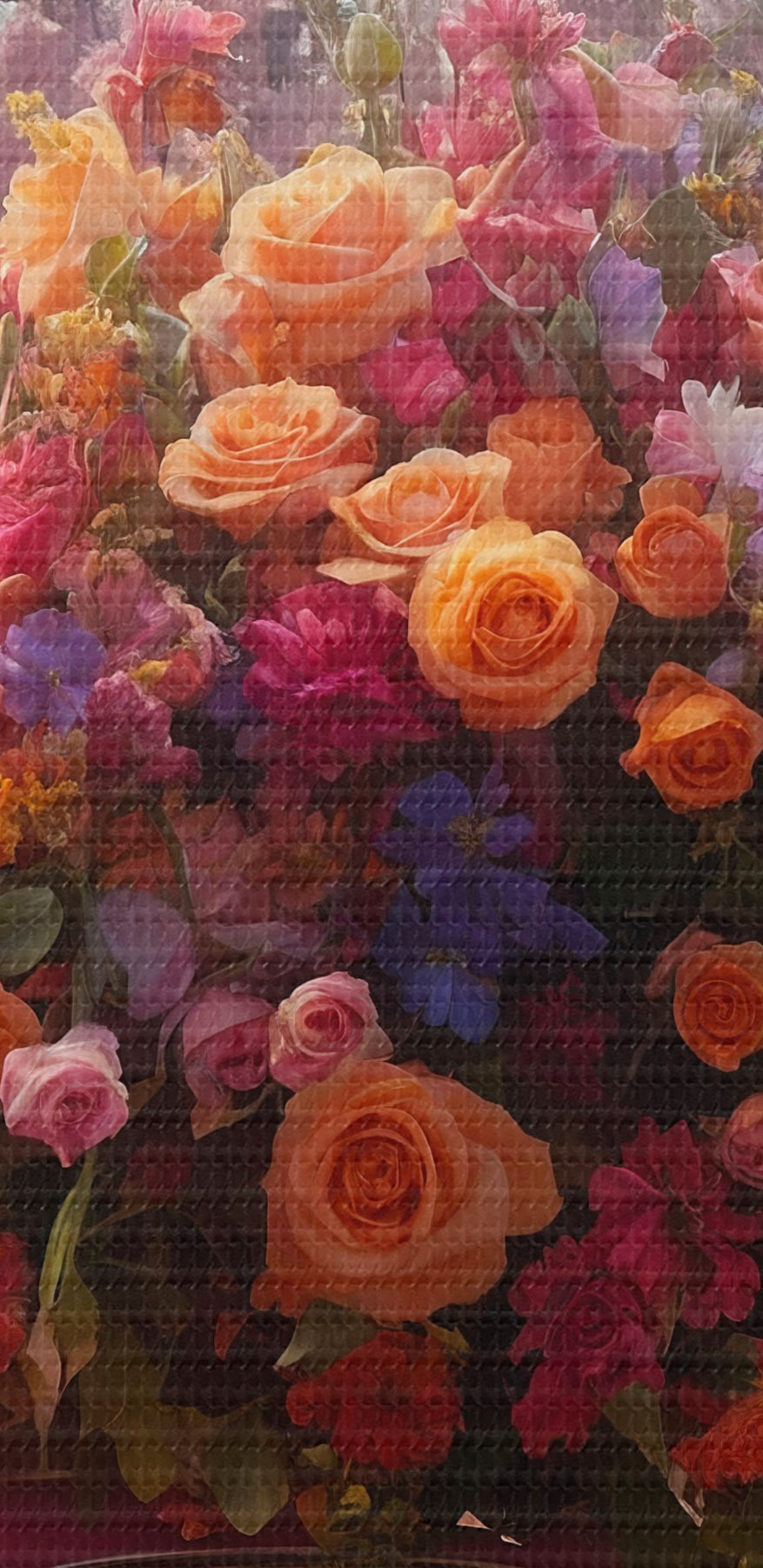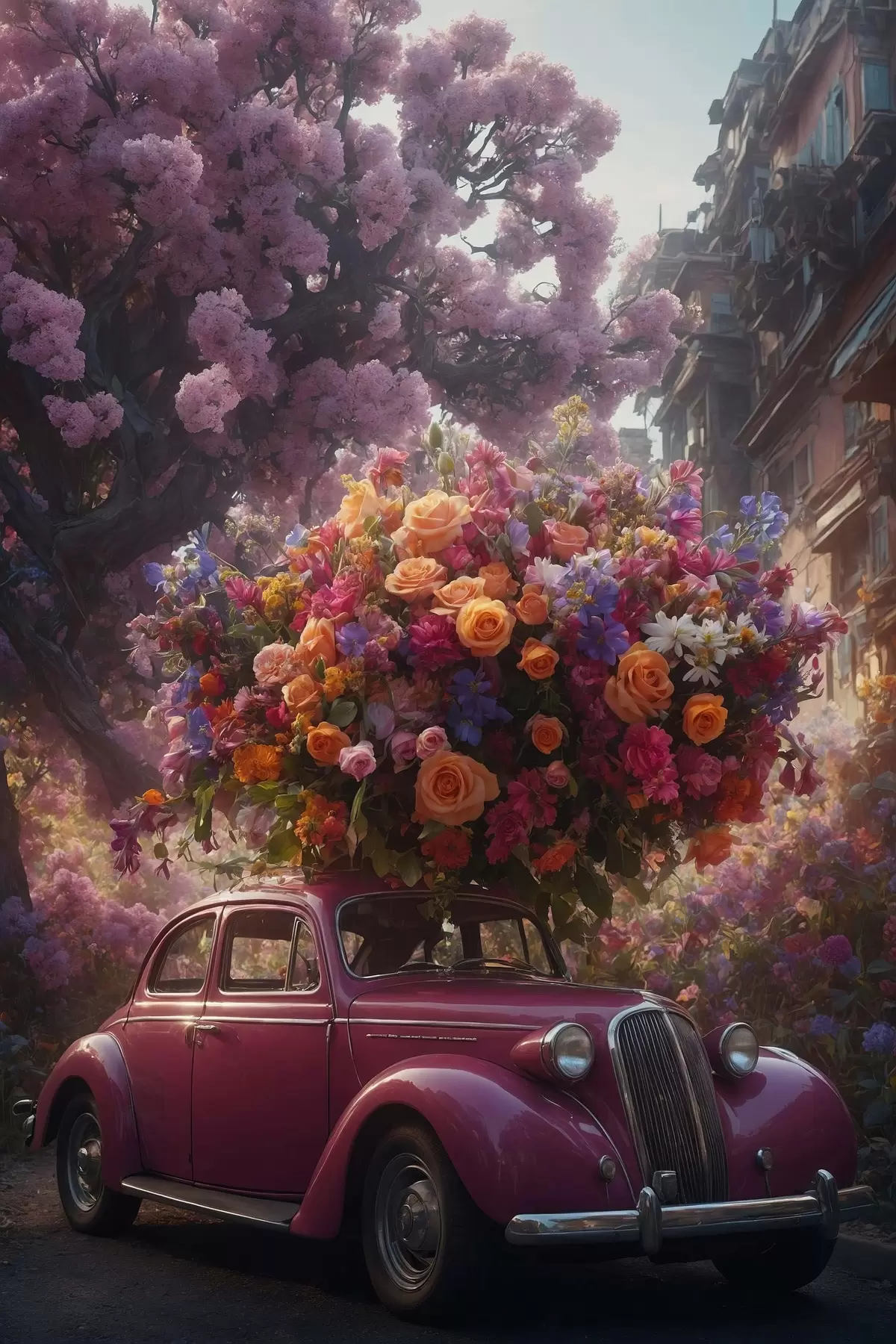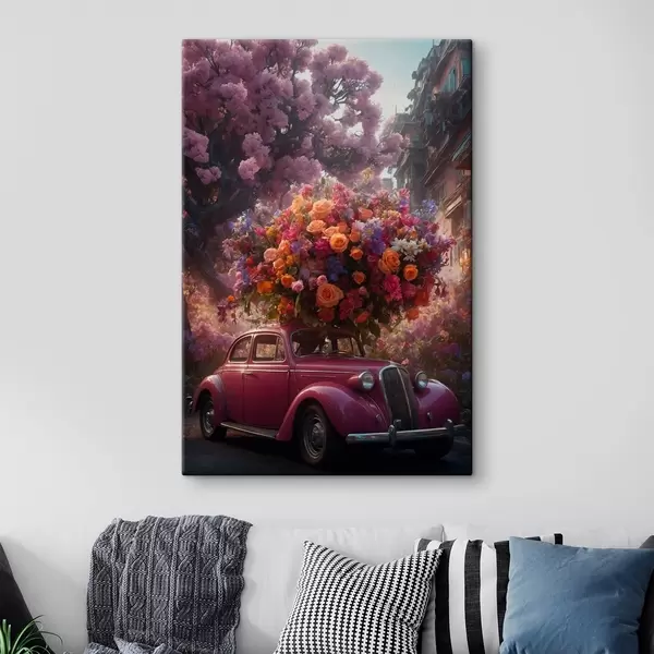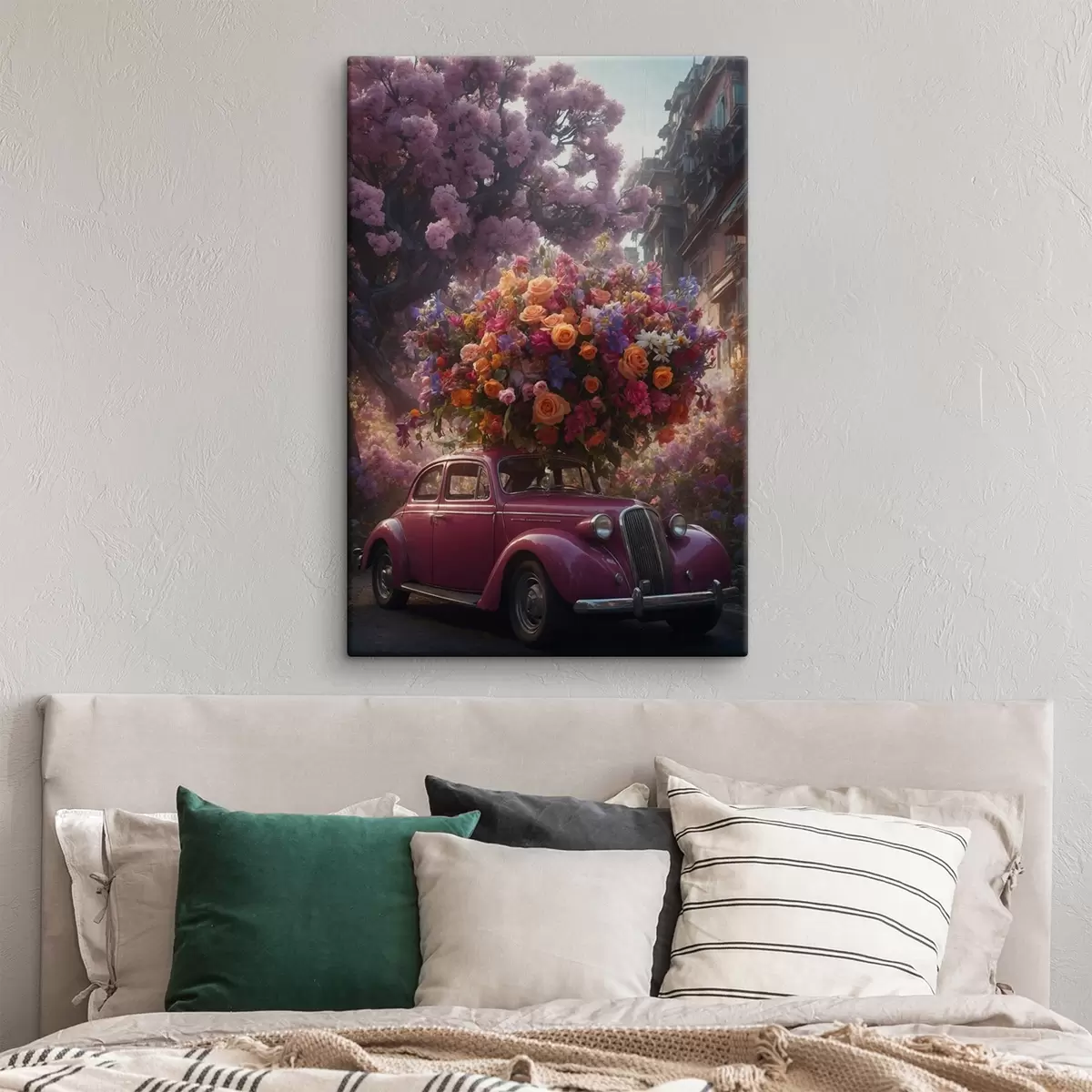 Paveikslas Retro automobilis ir didžiulė gėlių puokštė Nr s44471