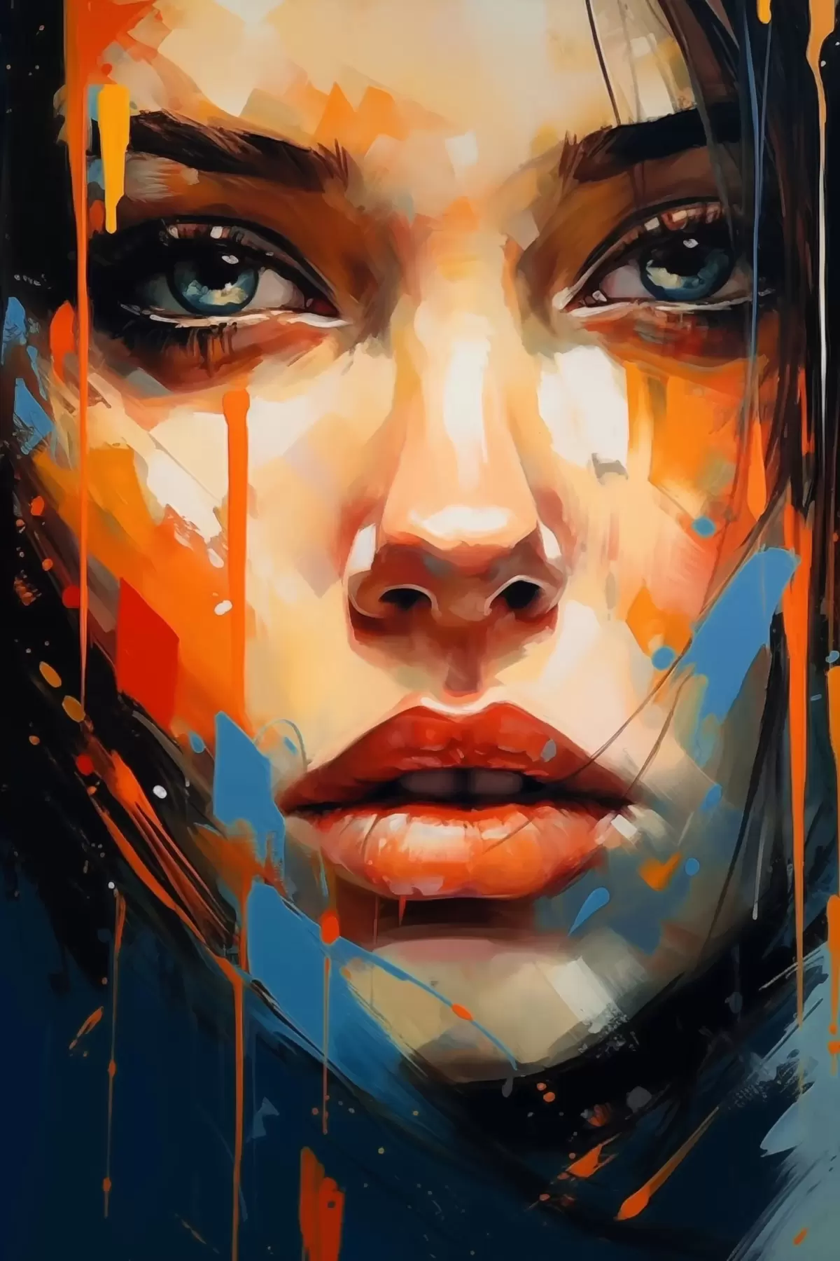Paveikslas Moters veidas su ryškiais potėpiais Nr s44485