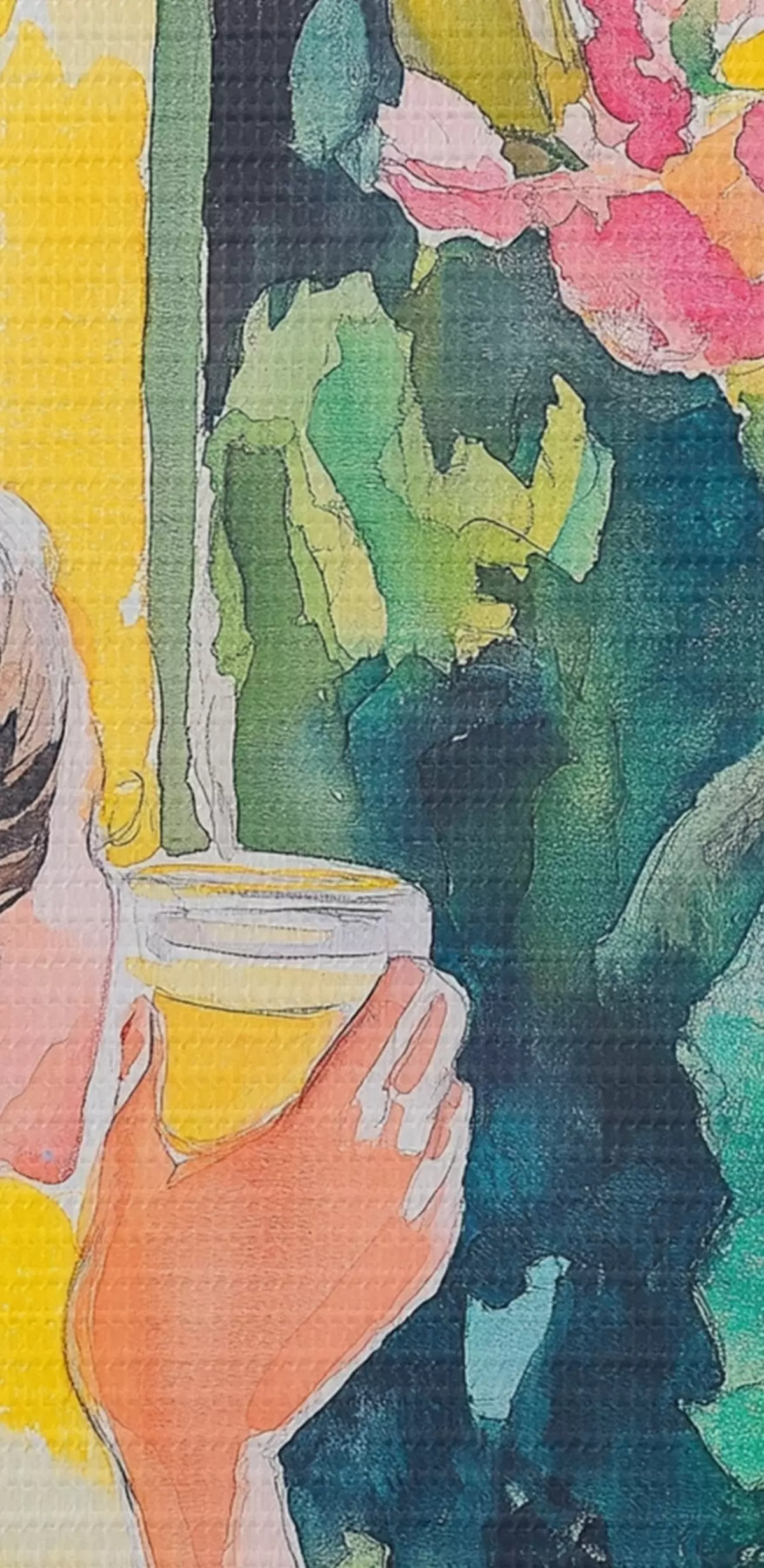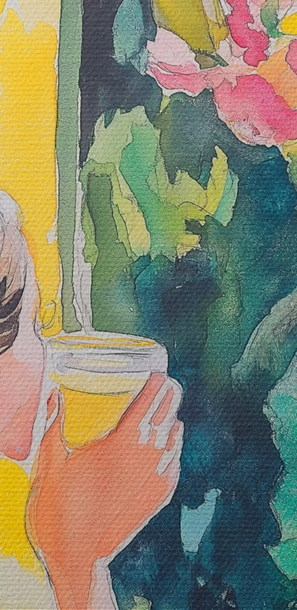 Paveikslas Vasaros nuotaikos, mergina kavinėje, limoncello, Italija, akvarelės stilius Nr s44505