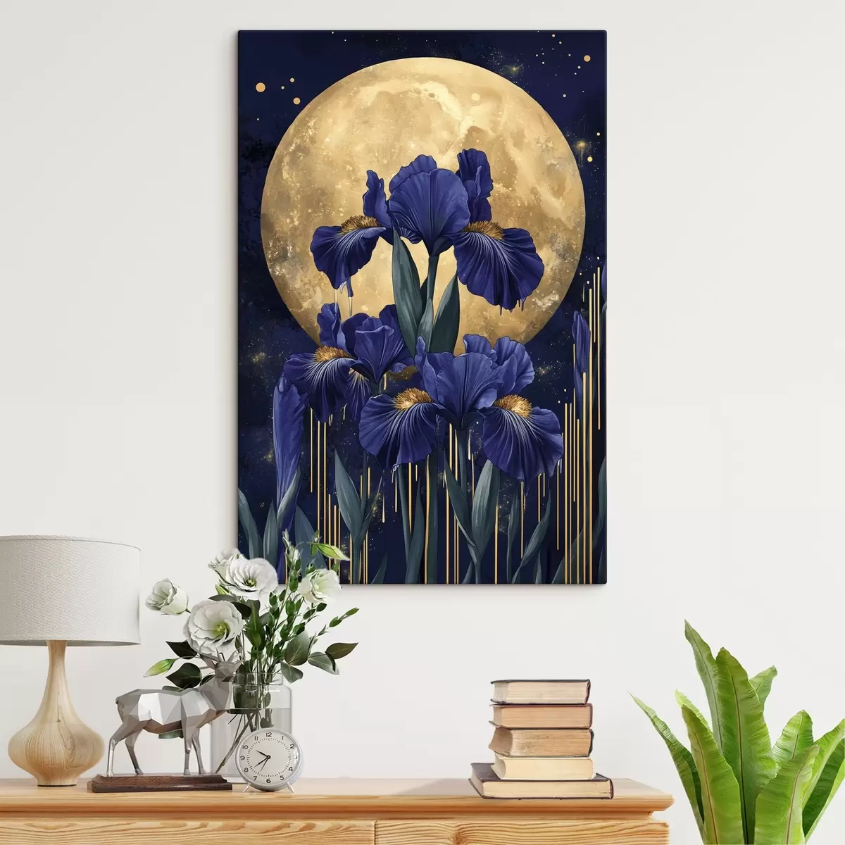 Paveikslas Irisų gėlės, šviečiantis mėnulis, naktinis dangus, mėlynos spalvos Nr s44510