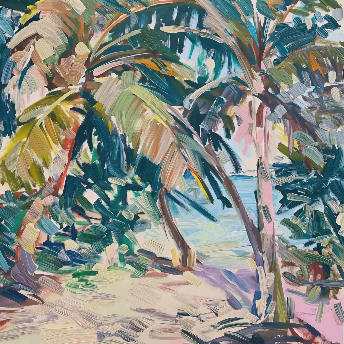 Paveikslas Palmių abstrakcija, teptuko potėpių imitacija Nr s44513