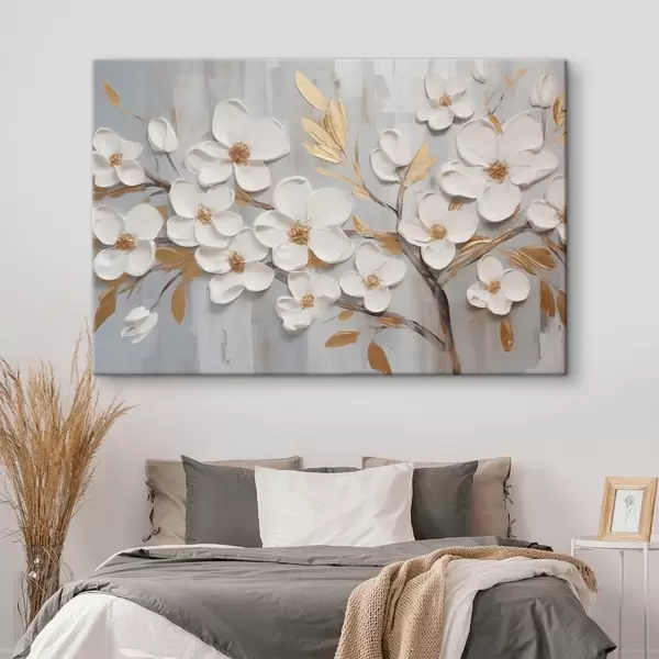 Paveikslas Baltų gėlių imitacijos tapyba Nr s44586