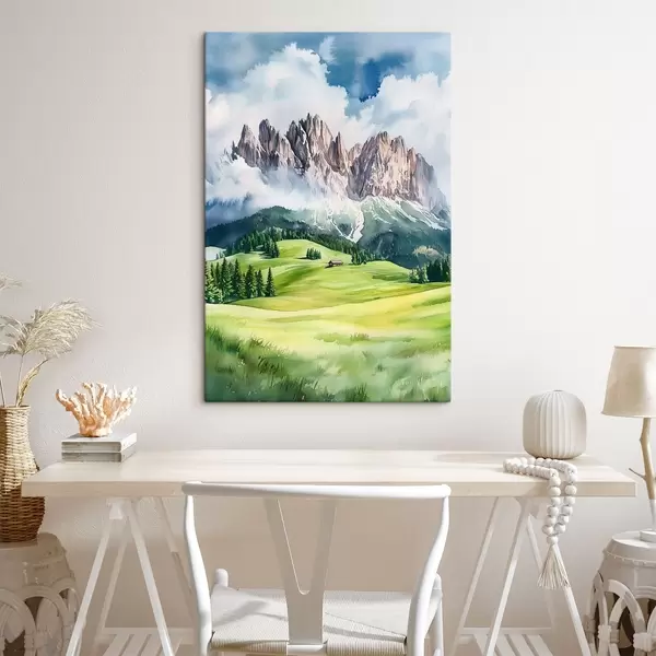 Paveikslas Dolomitai, Alpių kalnai, Italija, kraštovaizdis, akvarelės stilius Nr s44601