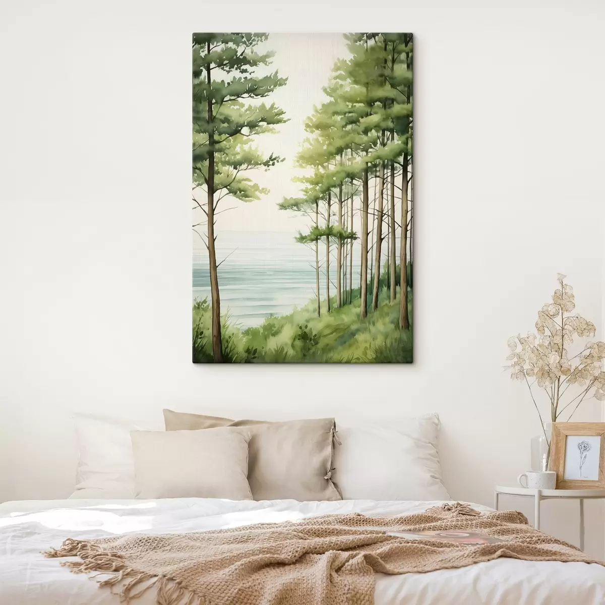 Paveikslas Žalias pušynas netoli jūros, akvarelės stilius Nr s44603