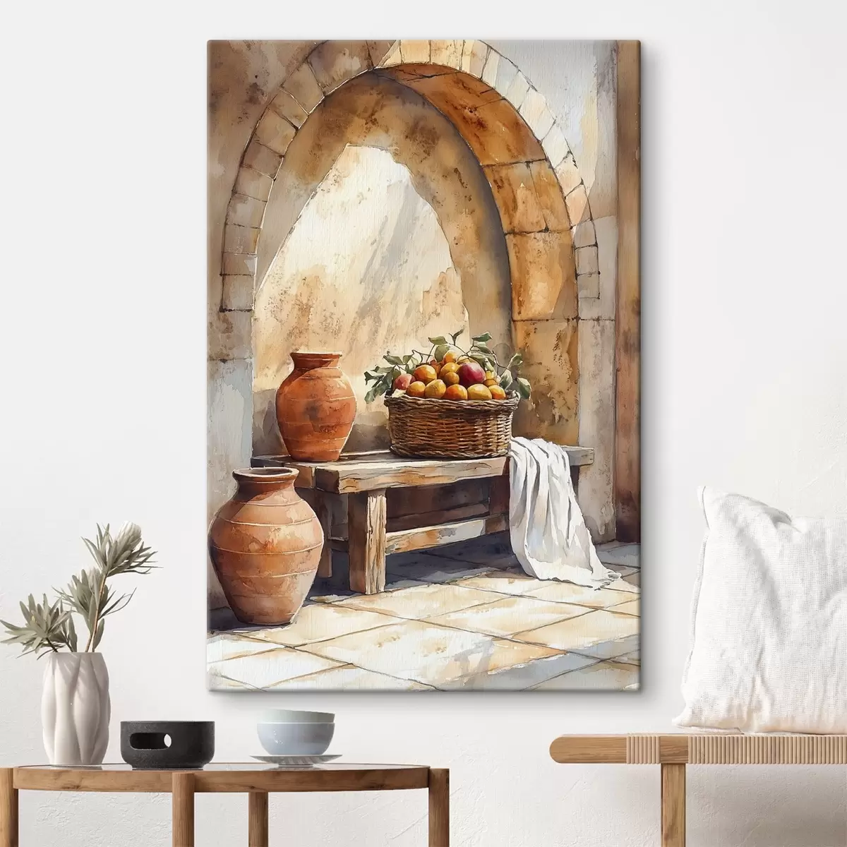 Paveikslas Estetiškos vazos ir pintas krepšys su apelsinais, Toskana, kaimiškas stilius Nr s44605