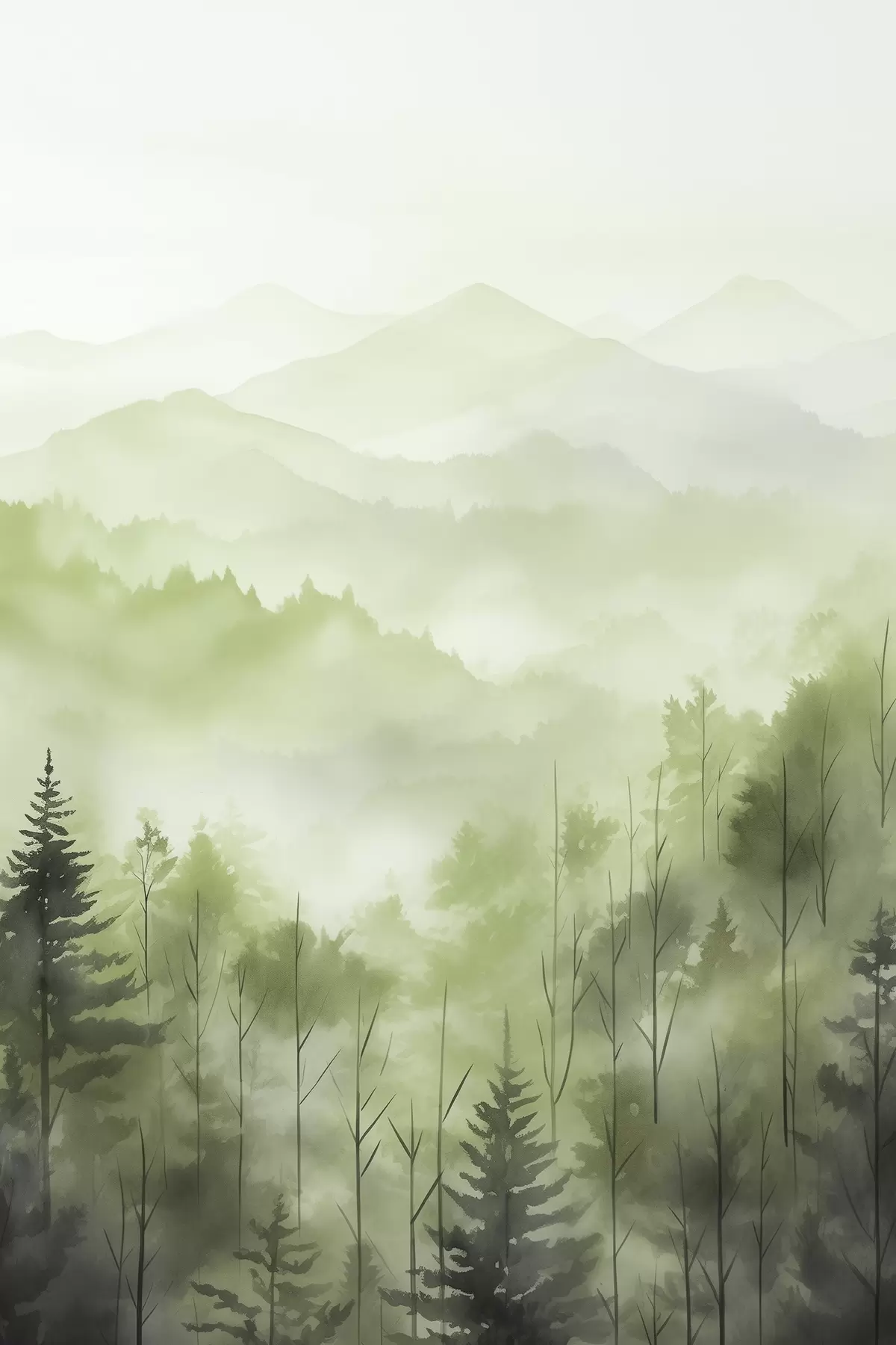 Paveikslėlis Kalnai su miško kraštovaizdžiu, žalios spalvos, akvarelės stilius s44606