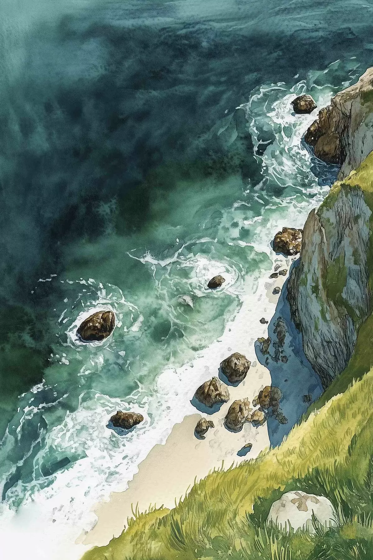 Paveikslas Akvamarino spalvos vanduo, vandenynas, uolos, Portugalija Nr s44617