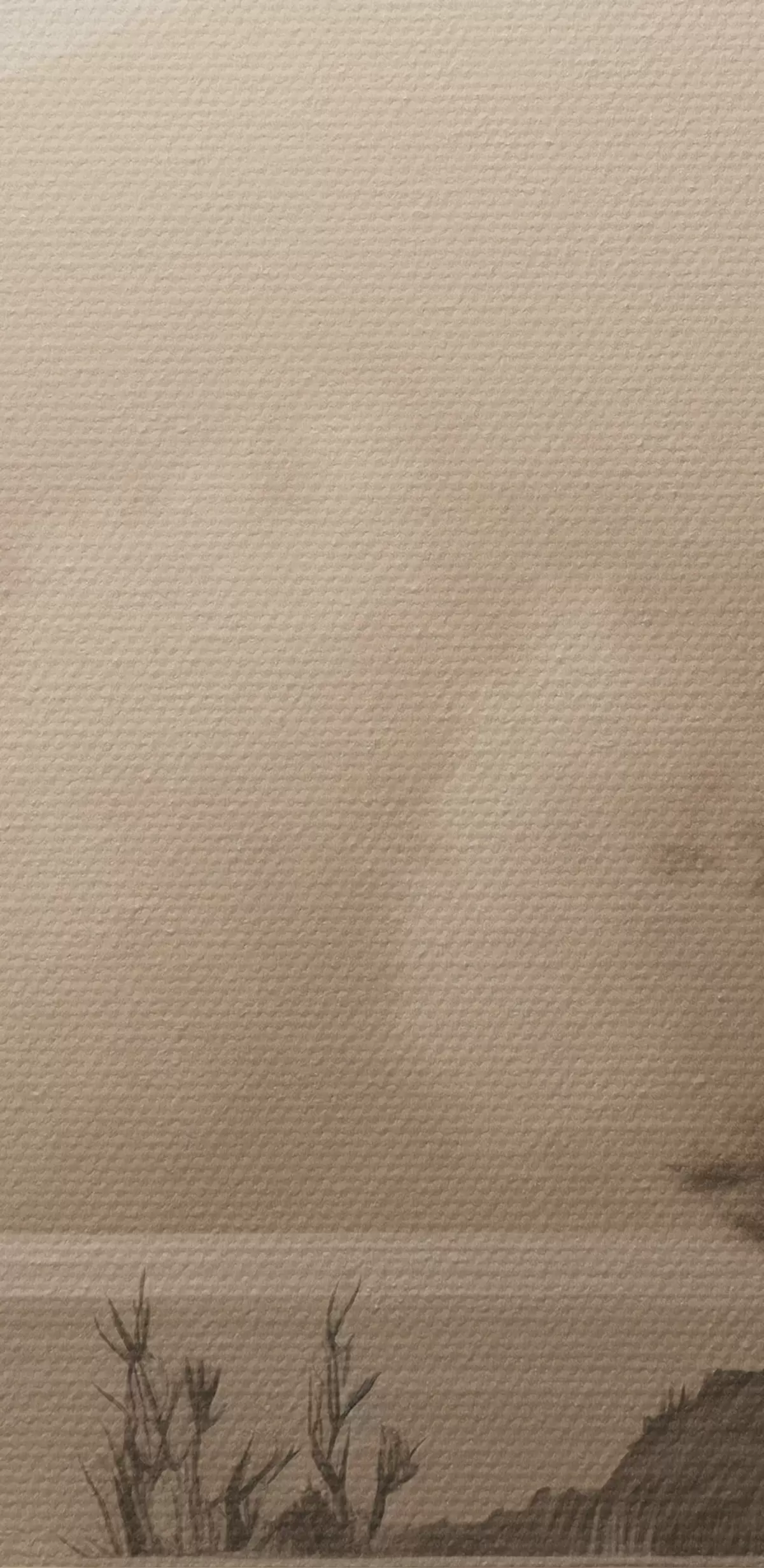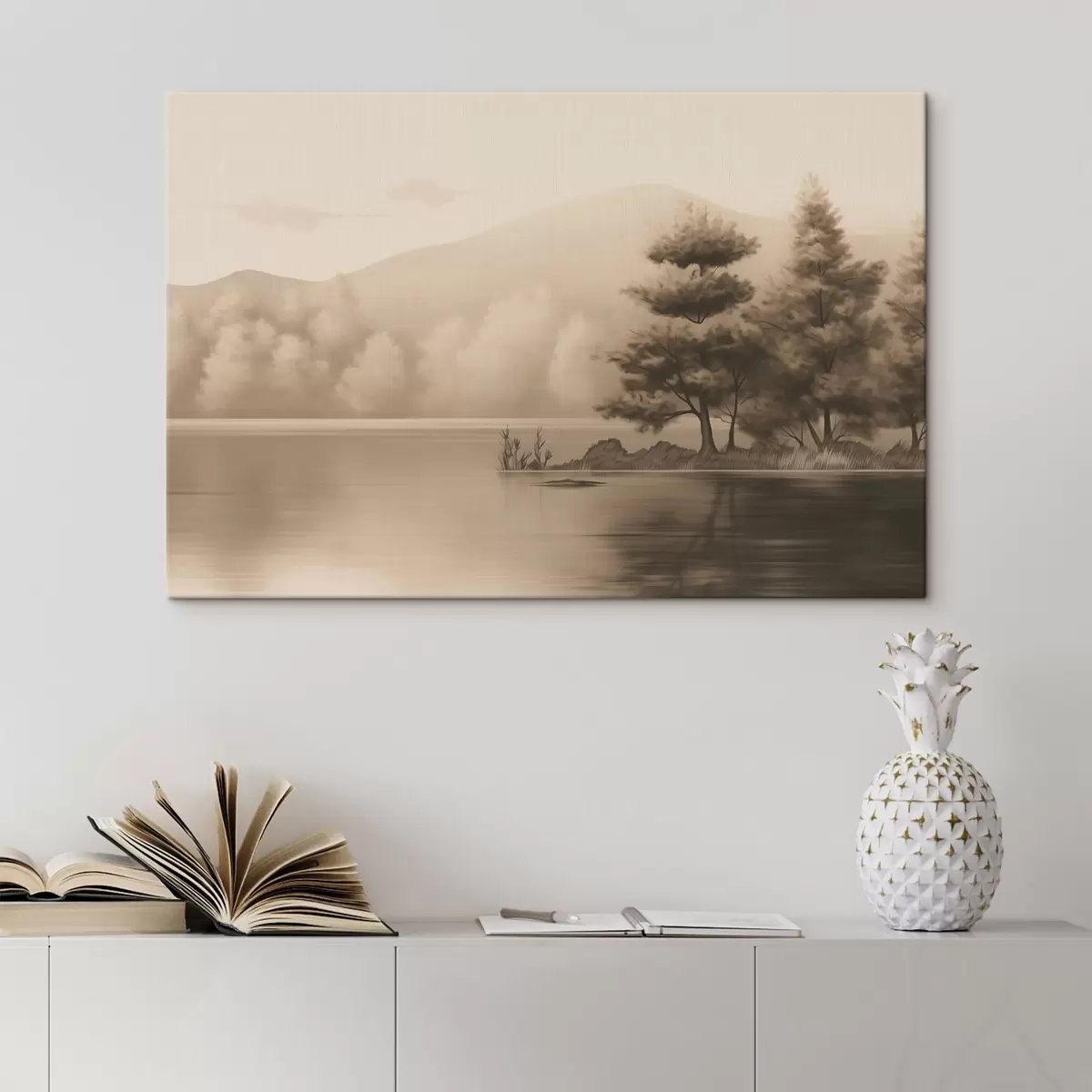 Paveikslas Ežeras ir medžiai sepijos spalvomis Nr s44633