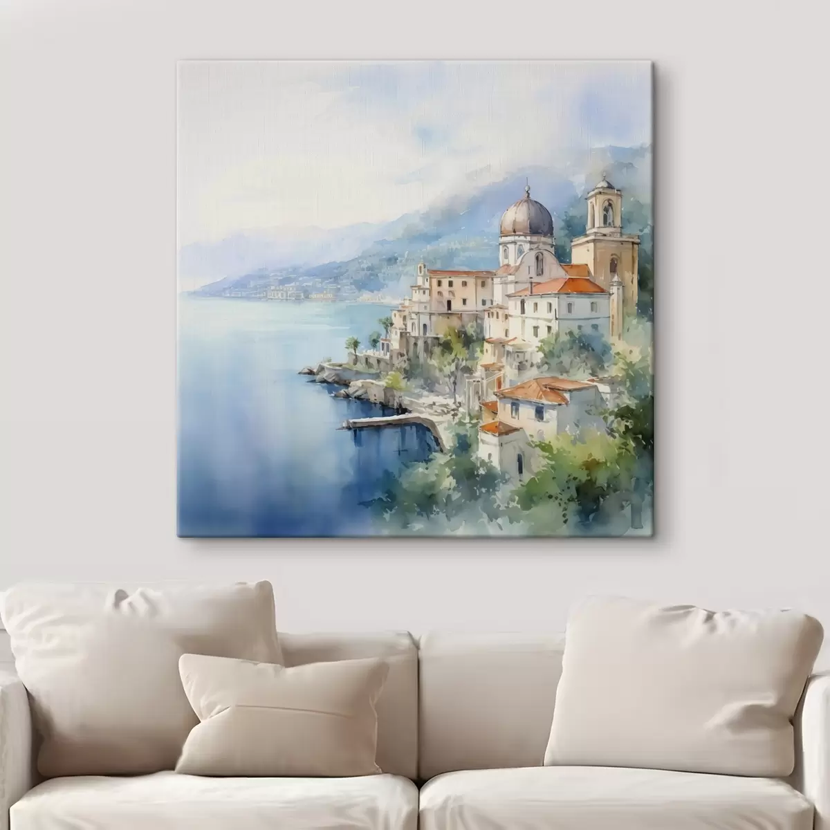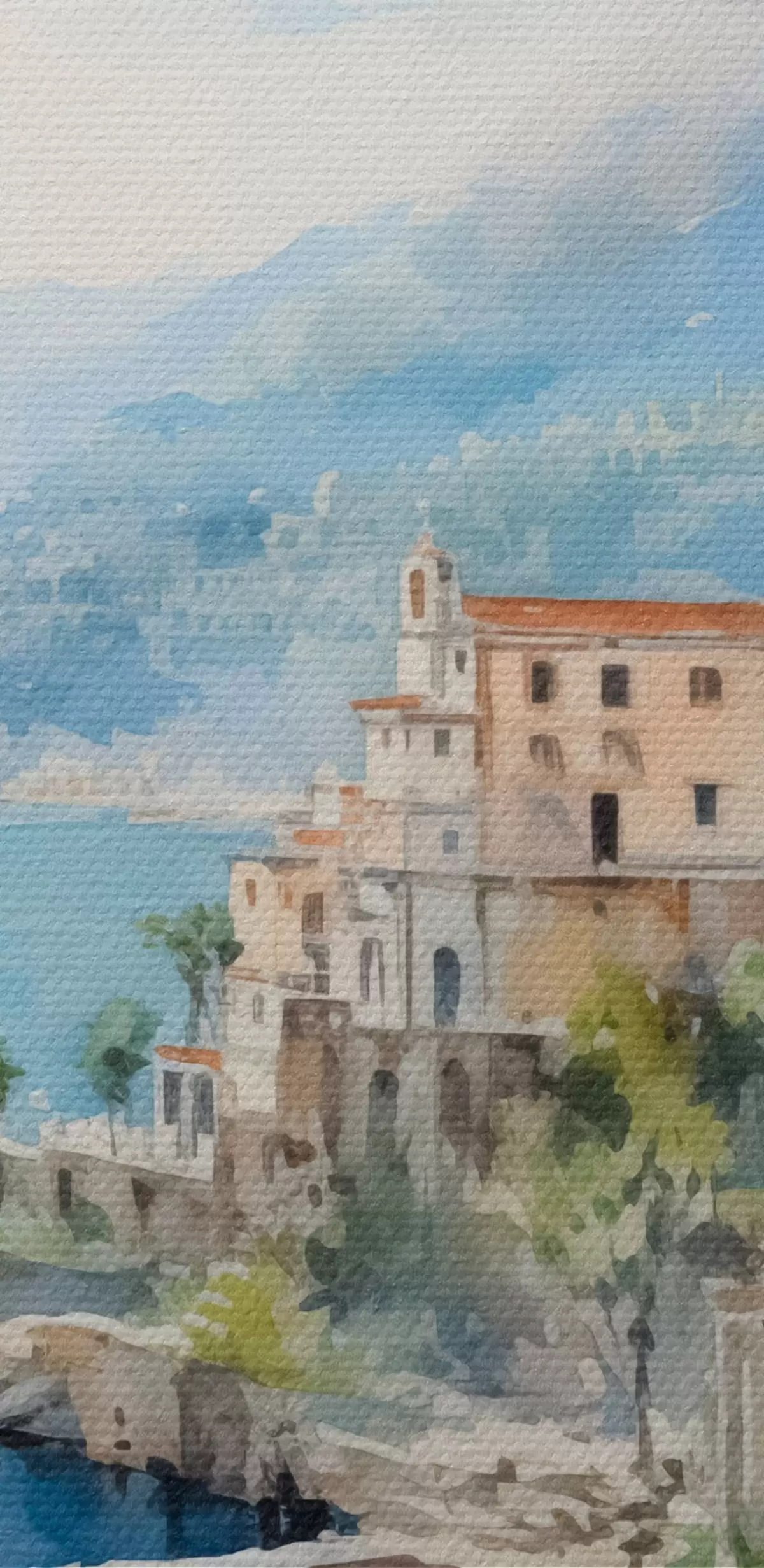 Paveikslas Miestas prie jūros, akvarelės imitacija Nr s44635