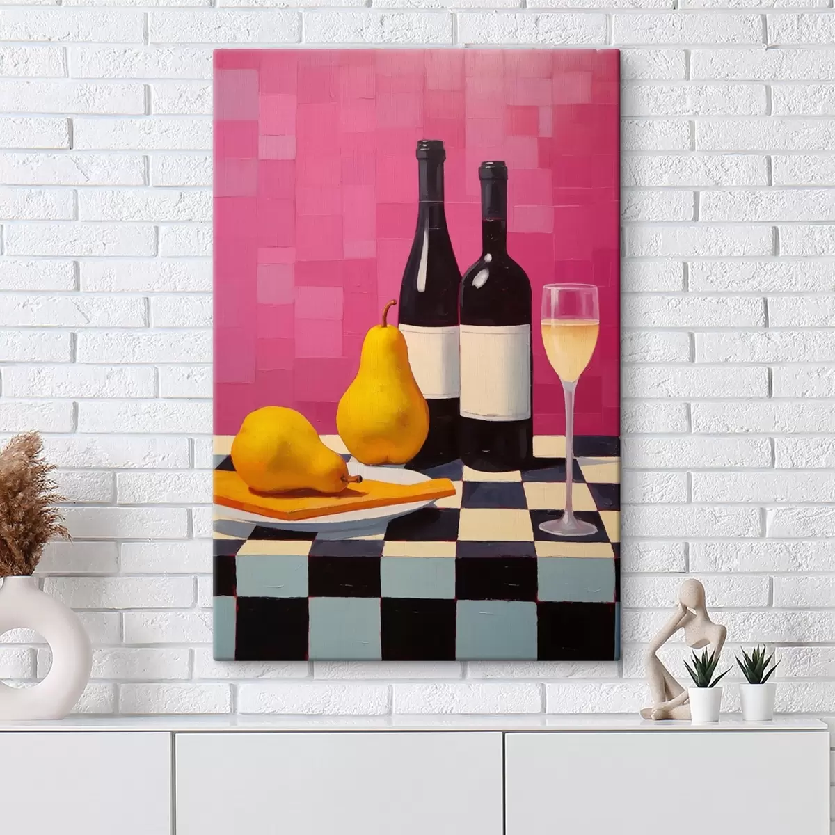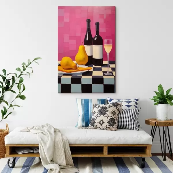 Paveikslas Kriaušės, taurė vyno ir du buteliai vyno Nr s44683