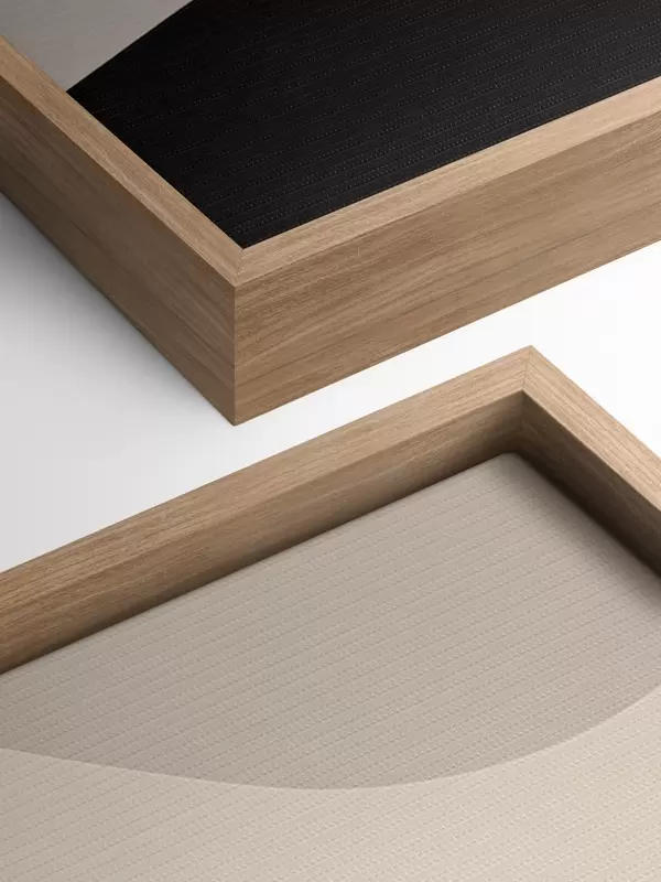 Standartas - lygi, grūdėta sintetinė medžiaga su blizgiu paviršiumi.