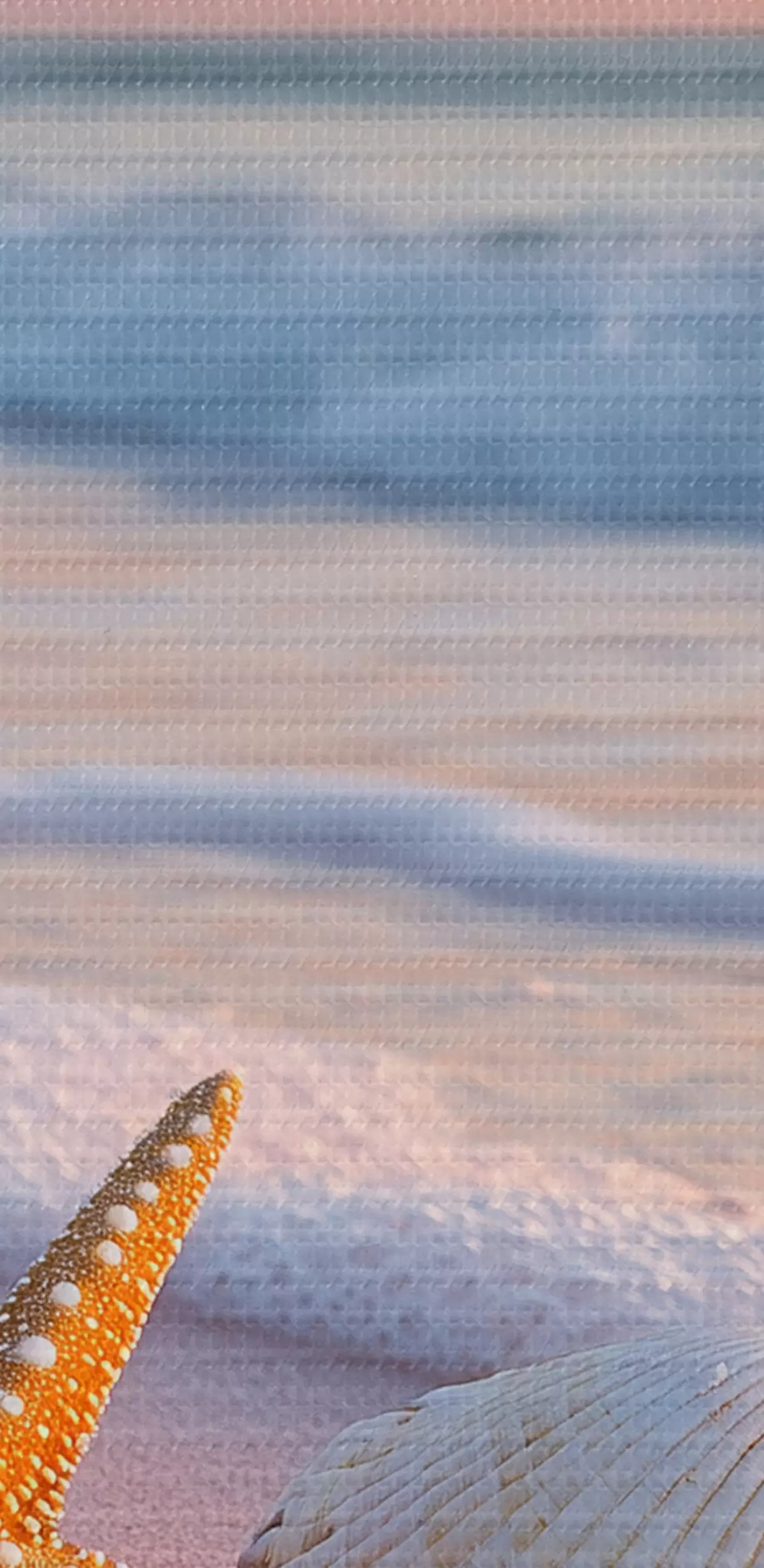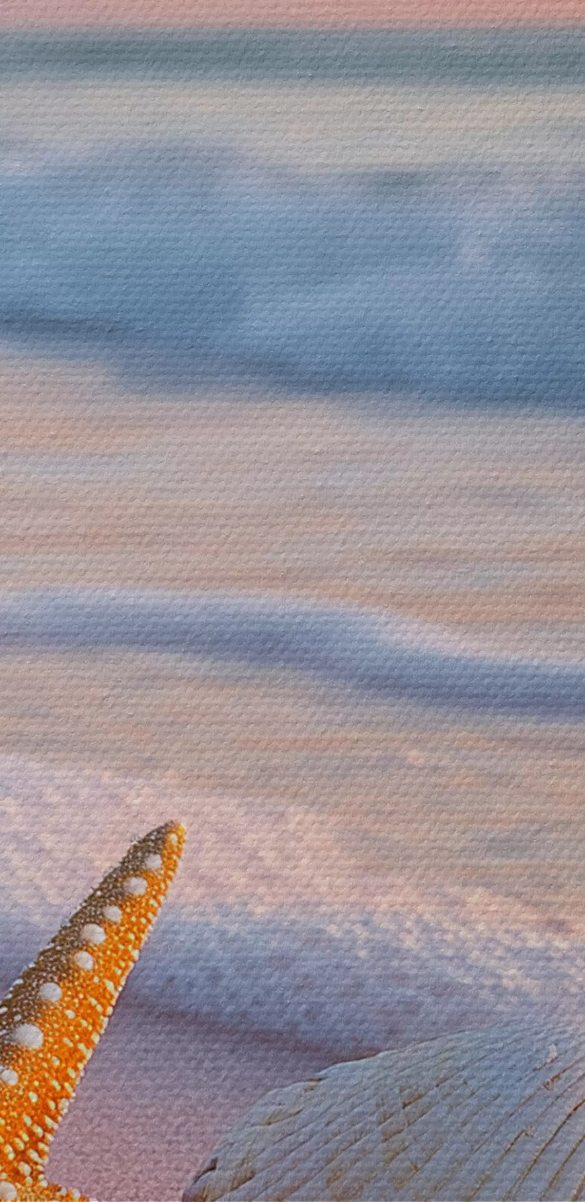 Paveikslas Jūros pakrantė su jūrų žvaigždėmis, kriauklėmis ir bangomis Nr s44714
