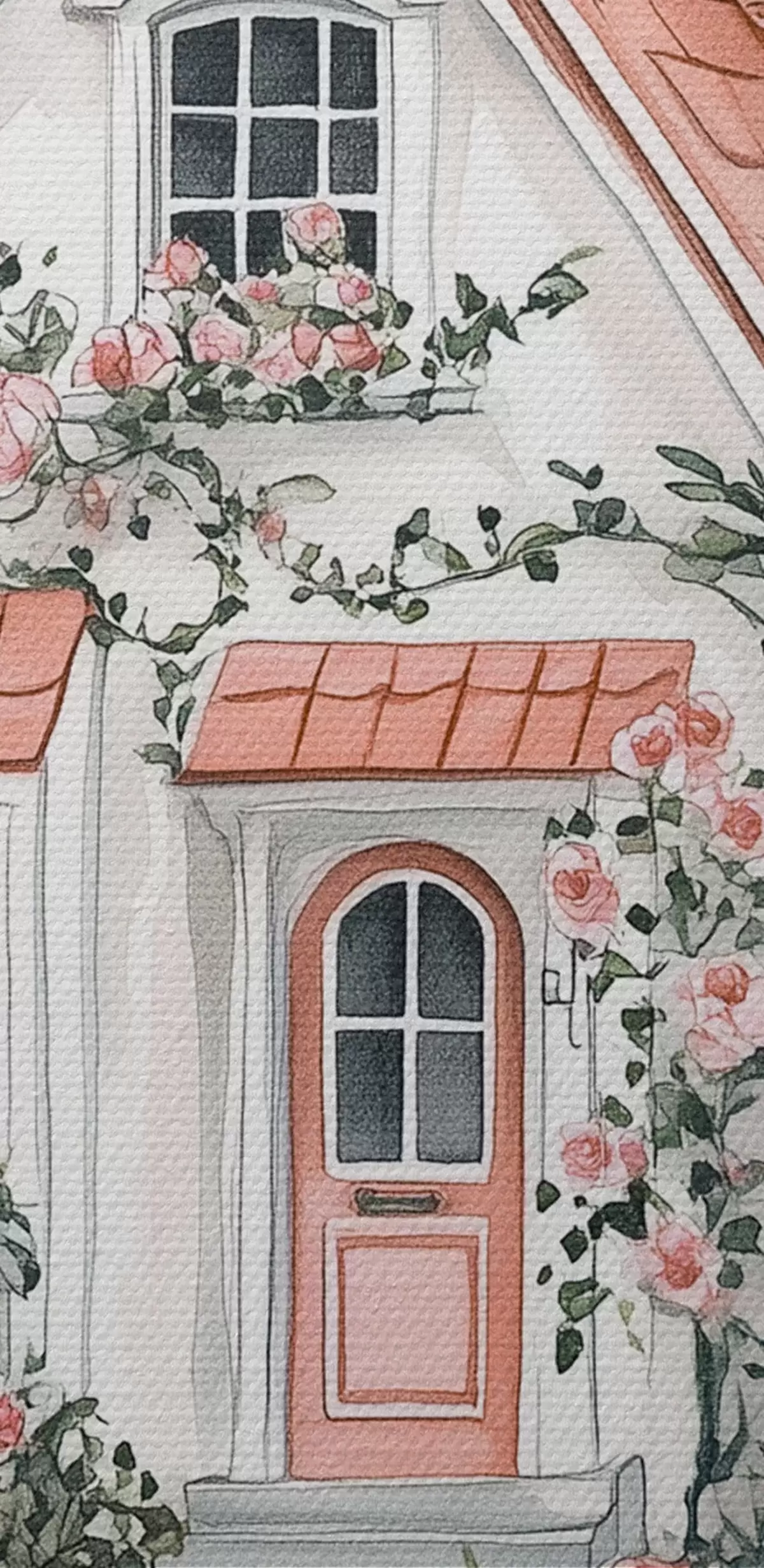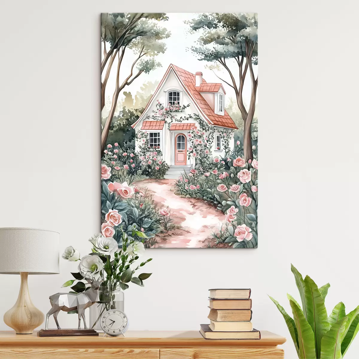 Paveikslas Baltas namas su rožių sodu miške Nr s44716