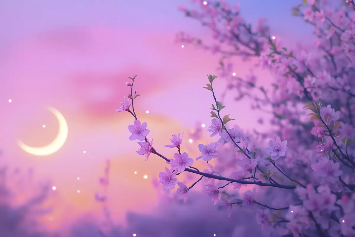 Paveikslas Violetinis dangus su mėnuliu ir vyšniomis Nr s44717