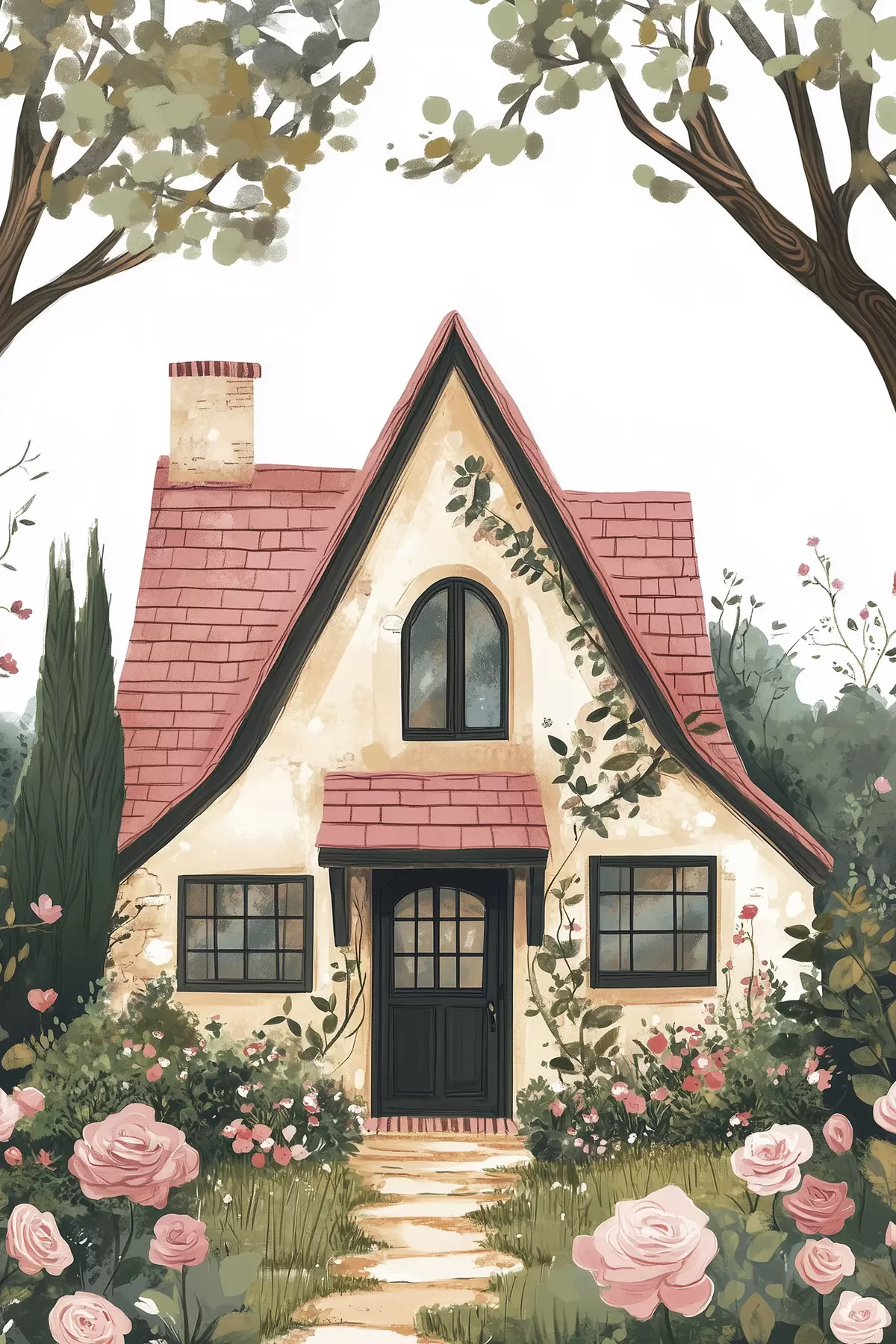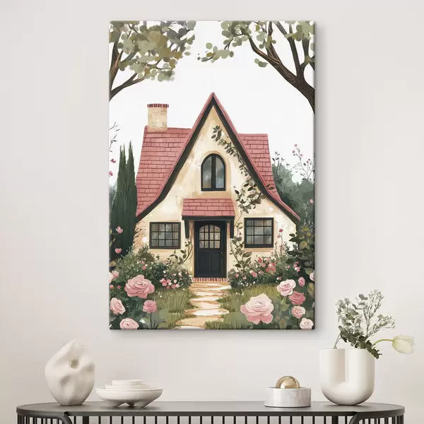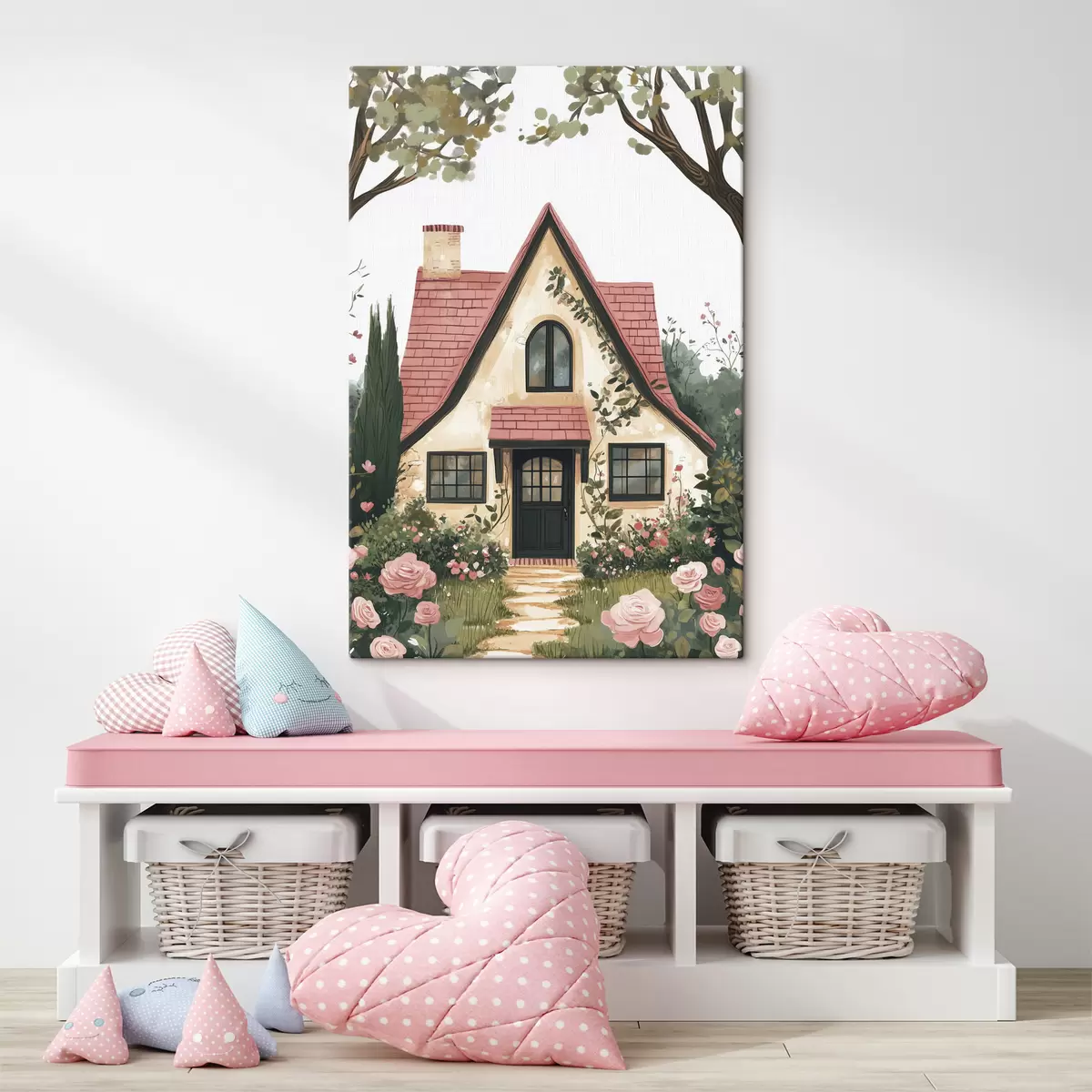 Paveikslas Pasakų namelis miške, rožės, pastelinis stilius Nr s44718