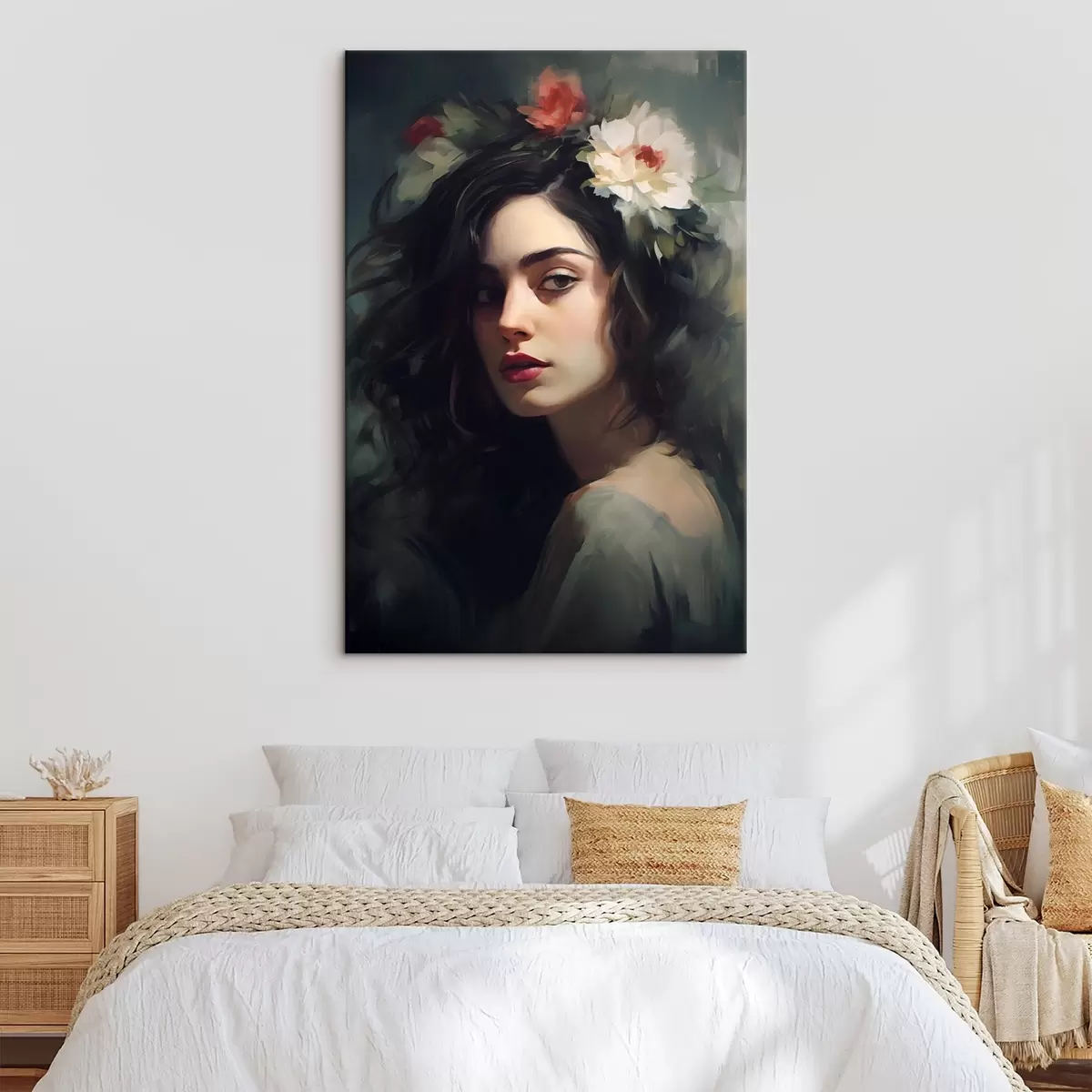Paveikslas Tamsiaplaukė moteris su gėlių vainiku Nr s44762