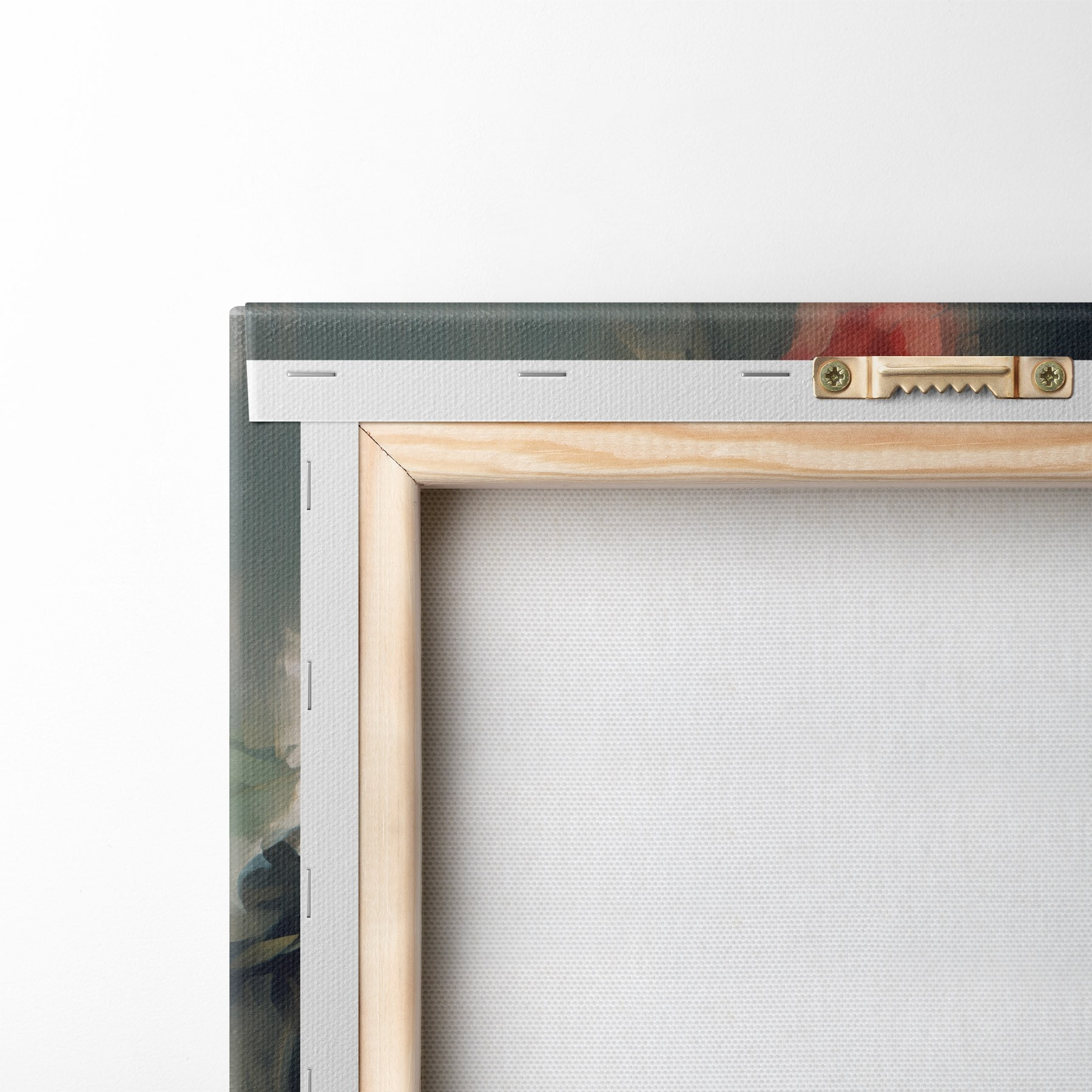 Paveikslą galima pakabinti iš karto jį gavus. Paveikslas bus ištemptas ant 2 cm pločio medinių neštuvų.
