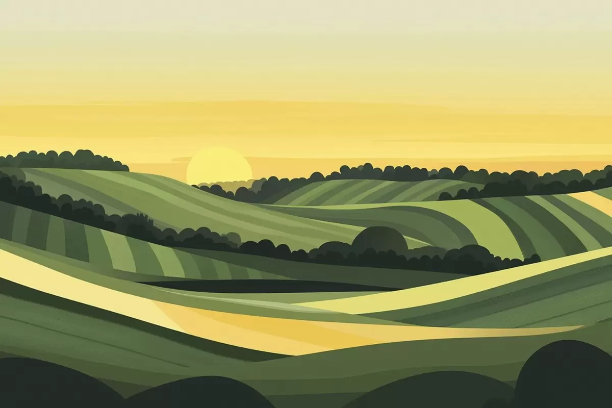 Paveikslas Abstraktūs kraštovaizdžiai su kalvomis ir saulėlydžiu Nr s44785