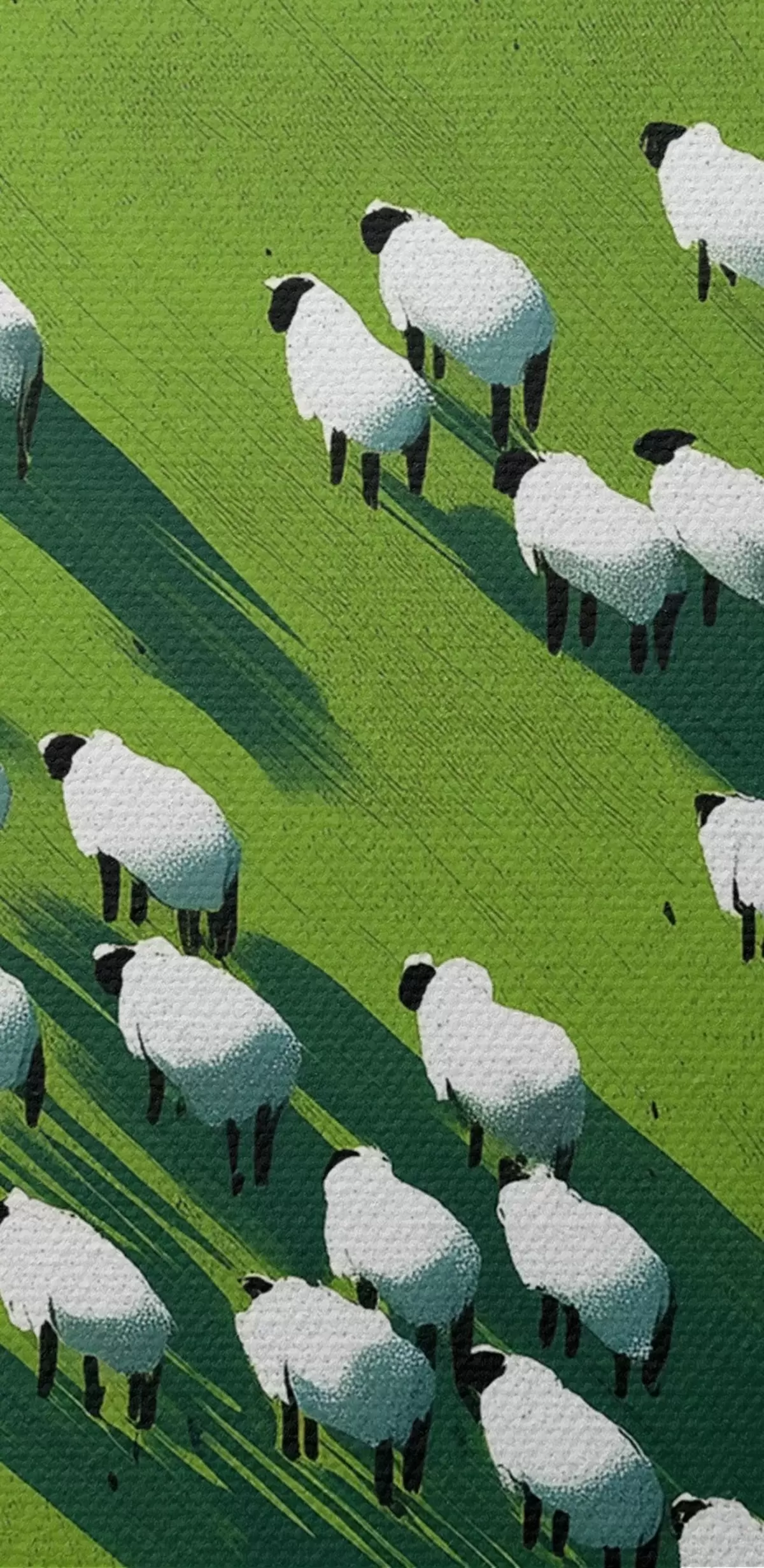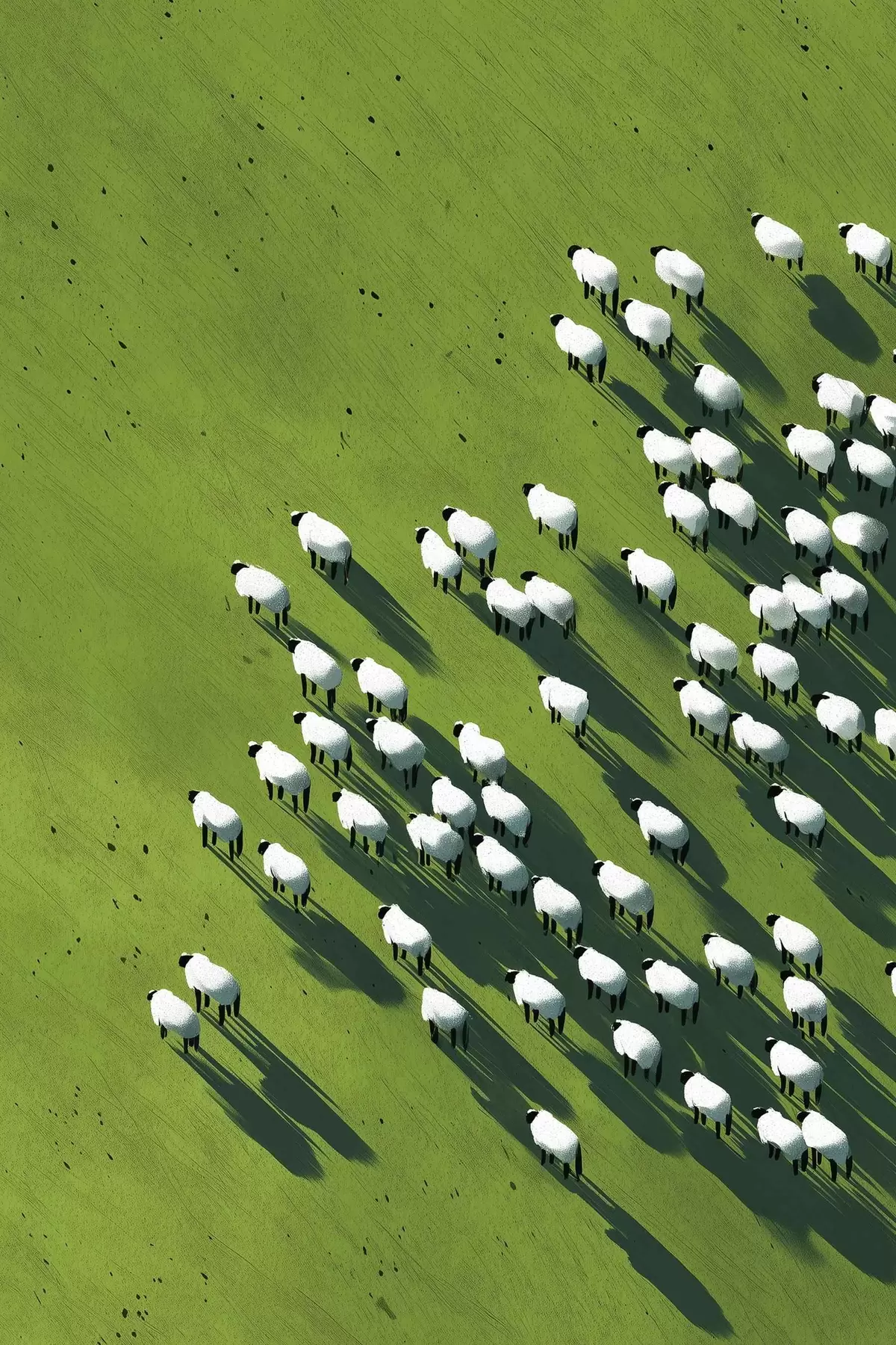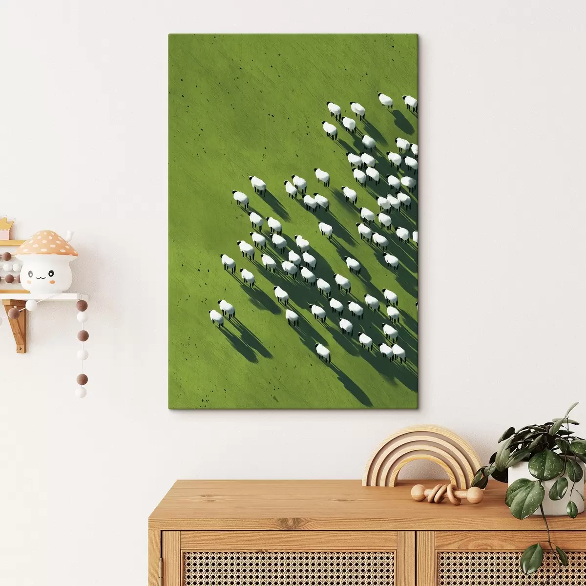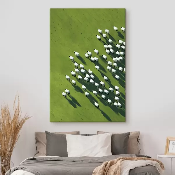 Paveikslas Žalias laukas su avių banda, abstrakcija, vaizdas iš oro Nr s44793