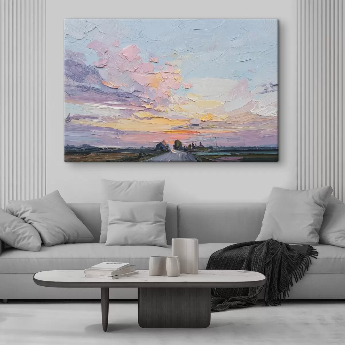 Paveikslas Kaimo kraštovaizdžiai aliejinio stiliaus piešinys, saulėlydis Nr s44794