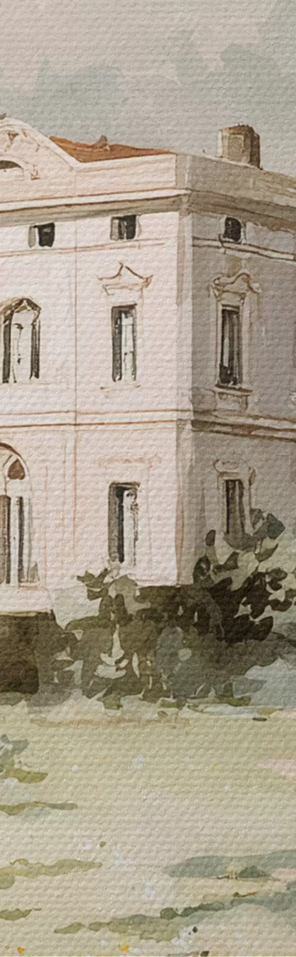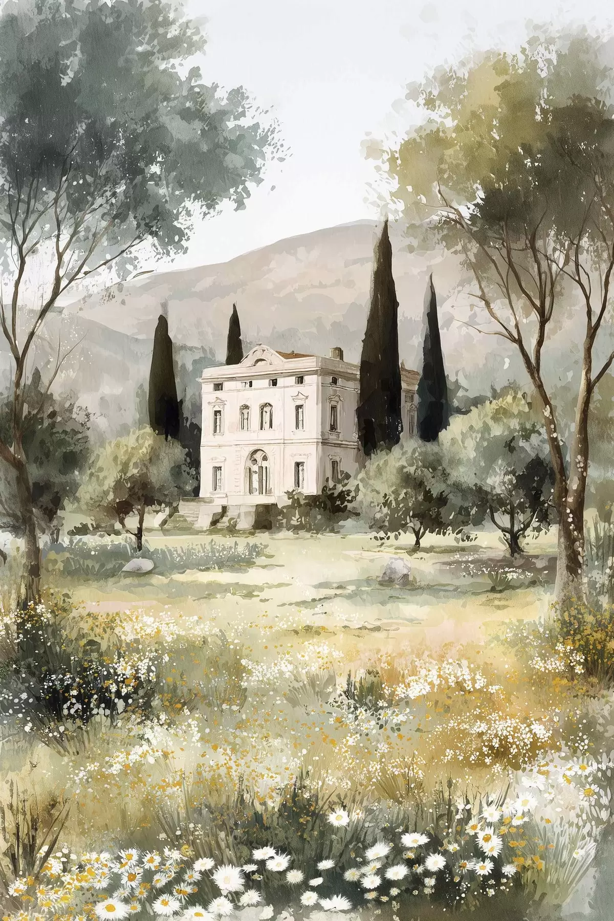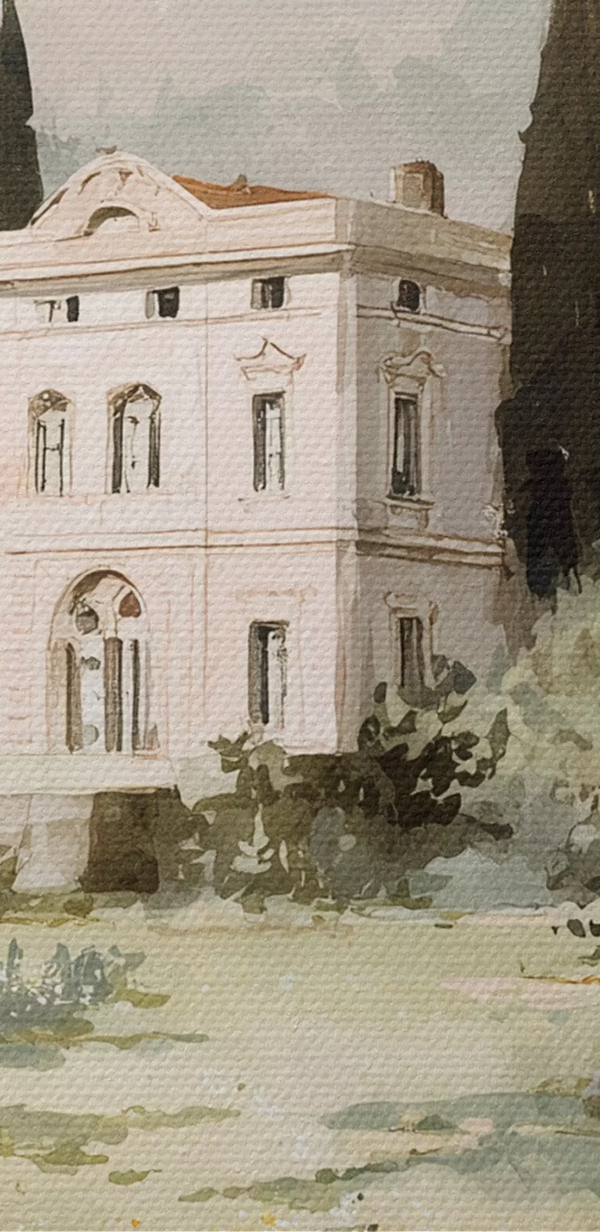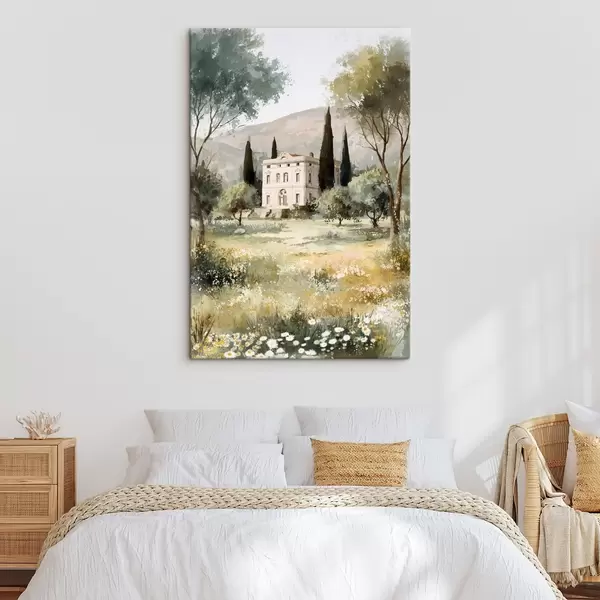 Paveikslas Viduržemio jūros kaimas su baltu namu sodo apsuptyje Nr s44796