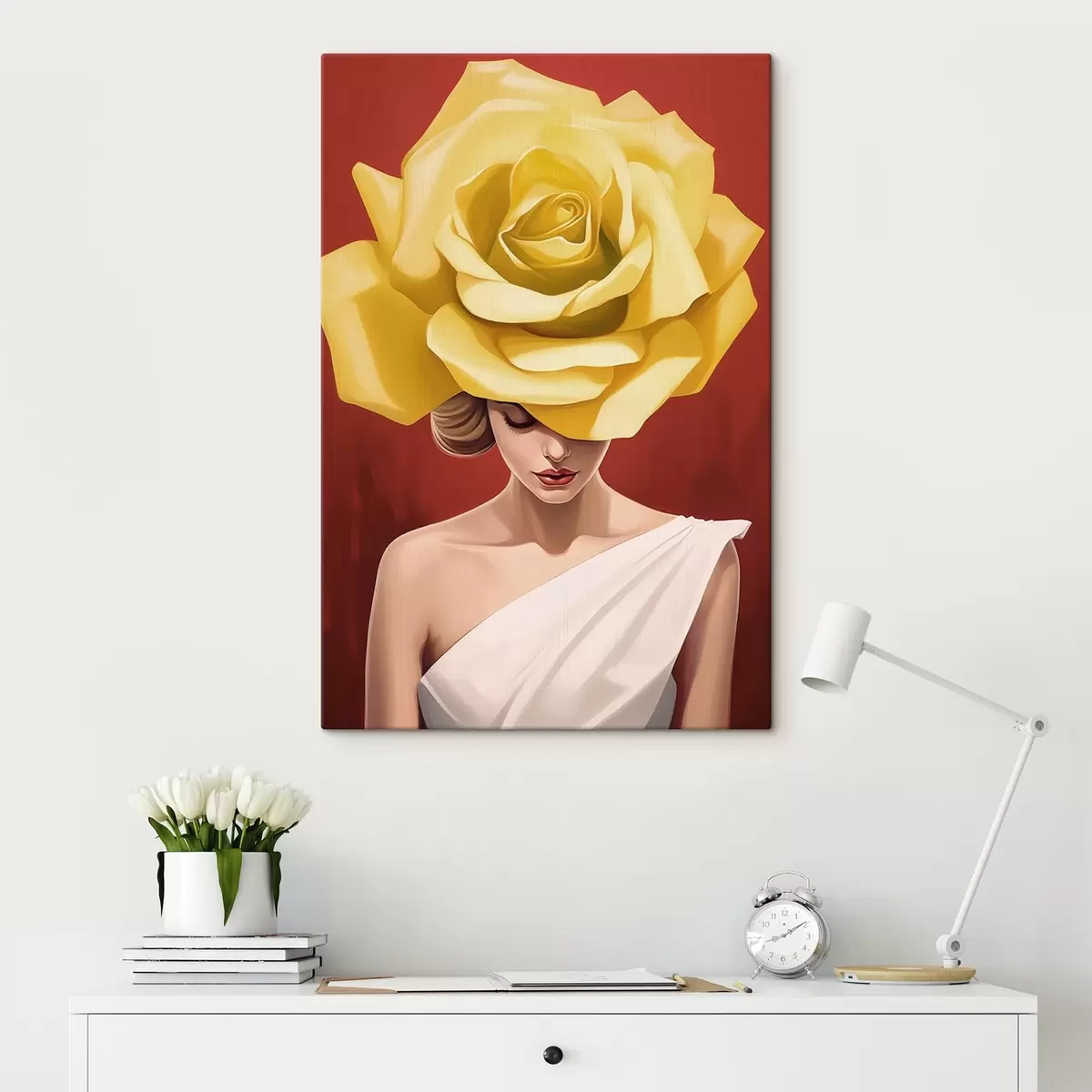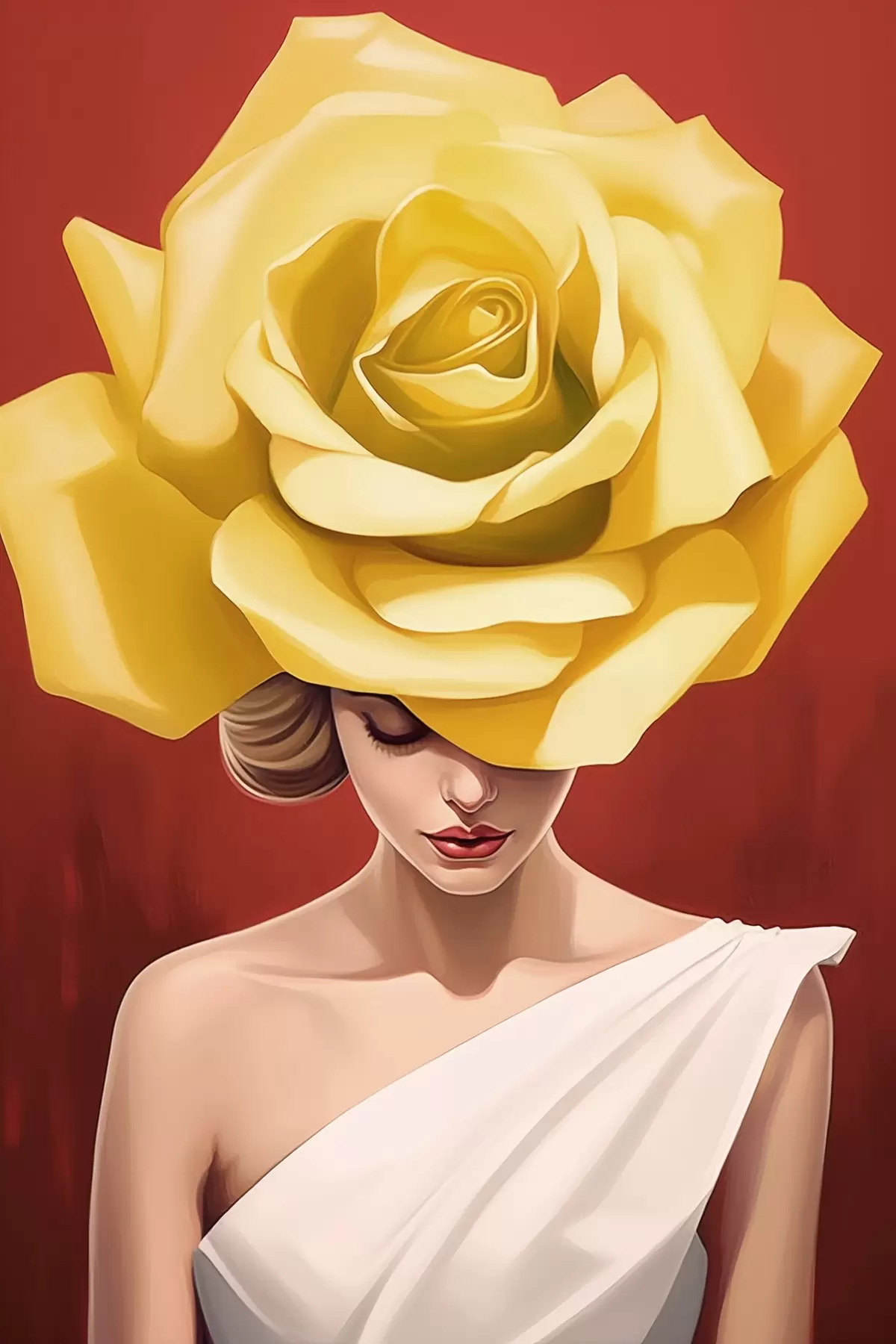 Paveikslas Moteris su geltonos rožės skrybėle Nr s44800