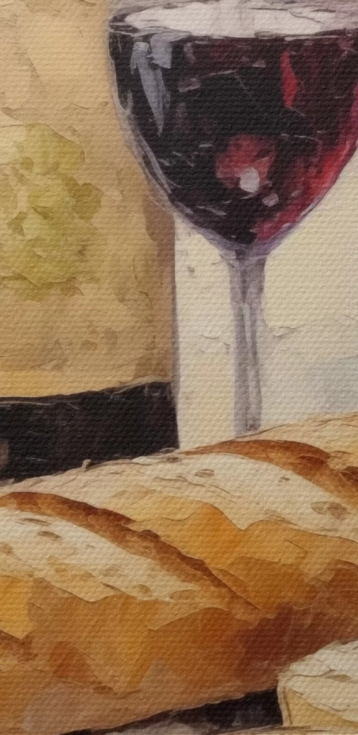 Paveikslas Vynas, bagetė ir vynuogės Nr s44815