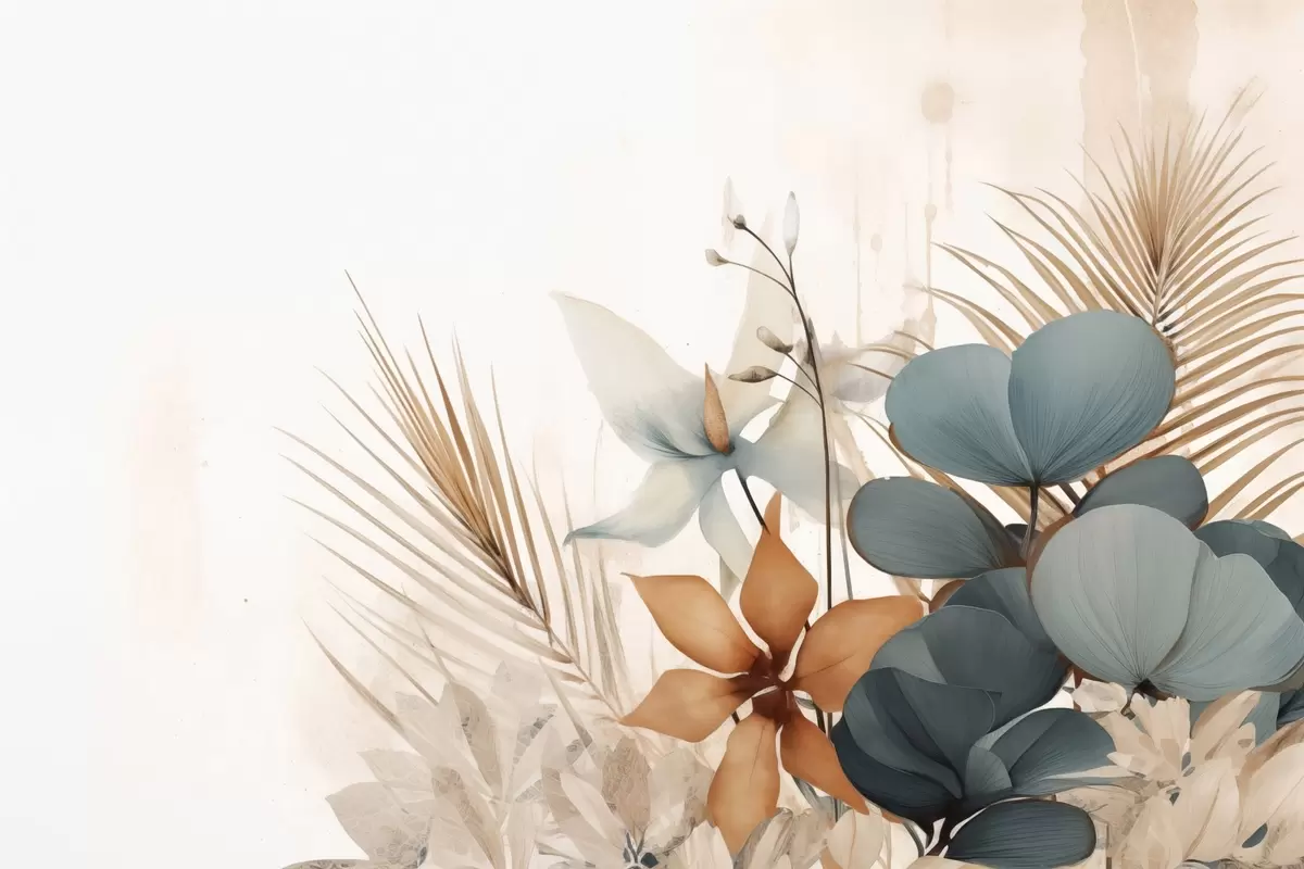 Paveikslas Akvarelės stiliaus dekoratyviniai lapai ir gėlės Nr s44843