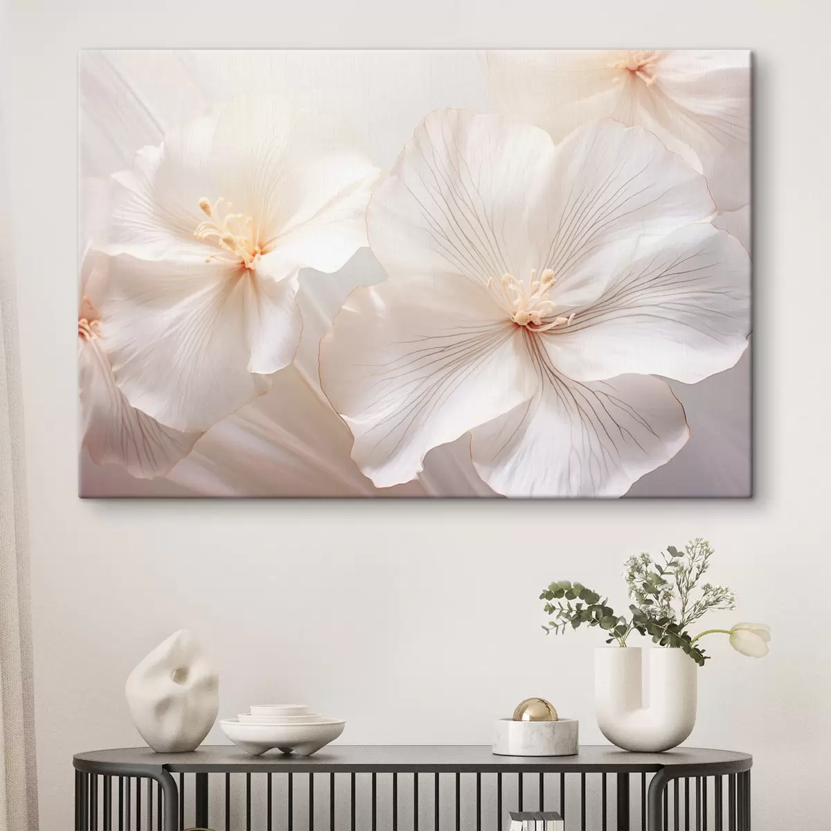 Paveikslas Subtilūs balti žiedlapiai su švelniais pastelinių spalvų žiedais ir minkštais centrais sukuria svajingą ir nežemišką gėlių meną Nr s44858
