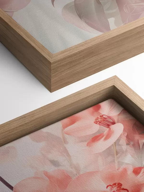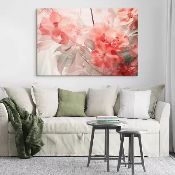 Paveikslas Ryškios rožinės atogrąžų gėlės su švelniais, prislopintais žaliais lapais sukuria svajingai subtilią tekstūrą Nr s44861