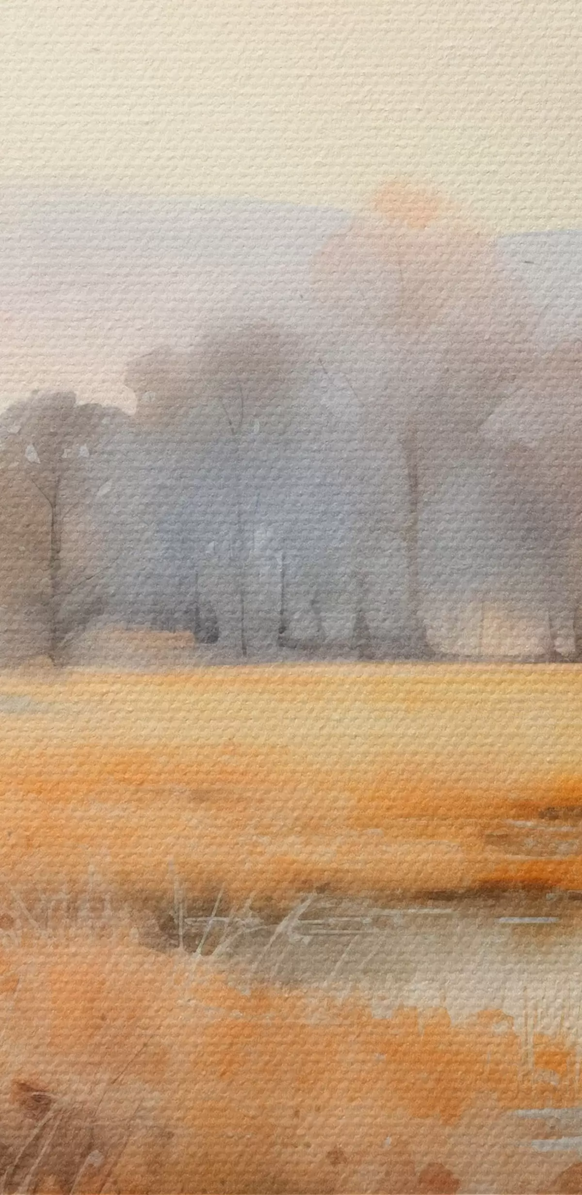 Paveikslas Ramus faktūrinis peizažas, imituojantis nendres ir plikus medžius, ramų vandenį po dangumi Nr s44867