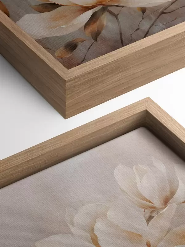 Paveikslas Tekstūruotos senovinės baltos magnolijos gėlės ant šakų šviesiai rudame fone Nr s44869