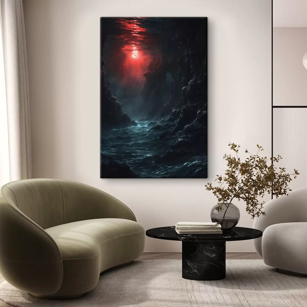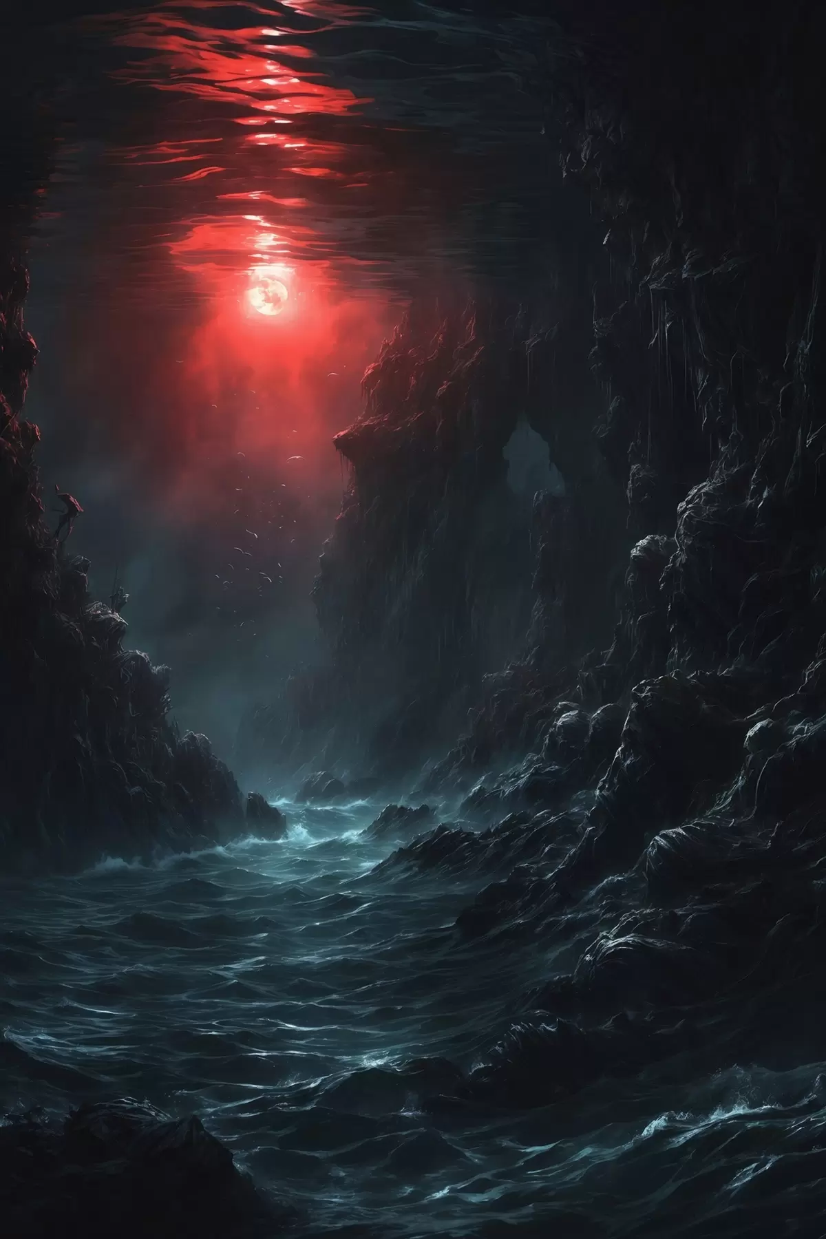 Paveikslas Tamsus jūros tarpeklis su raudona šviesa iš viršaus Nr s44870