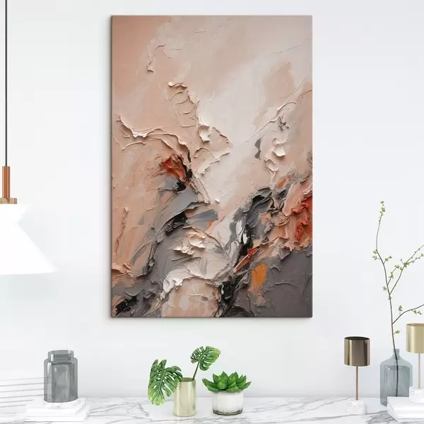 Paveikslas Persikinės pilkos spalvos abstrakcija su tekstūriniais potėpiais Nr s44873