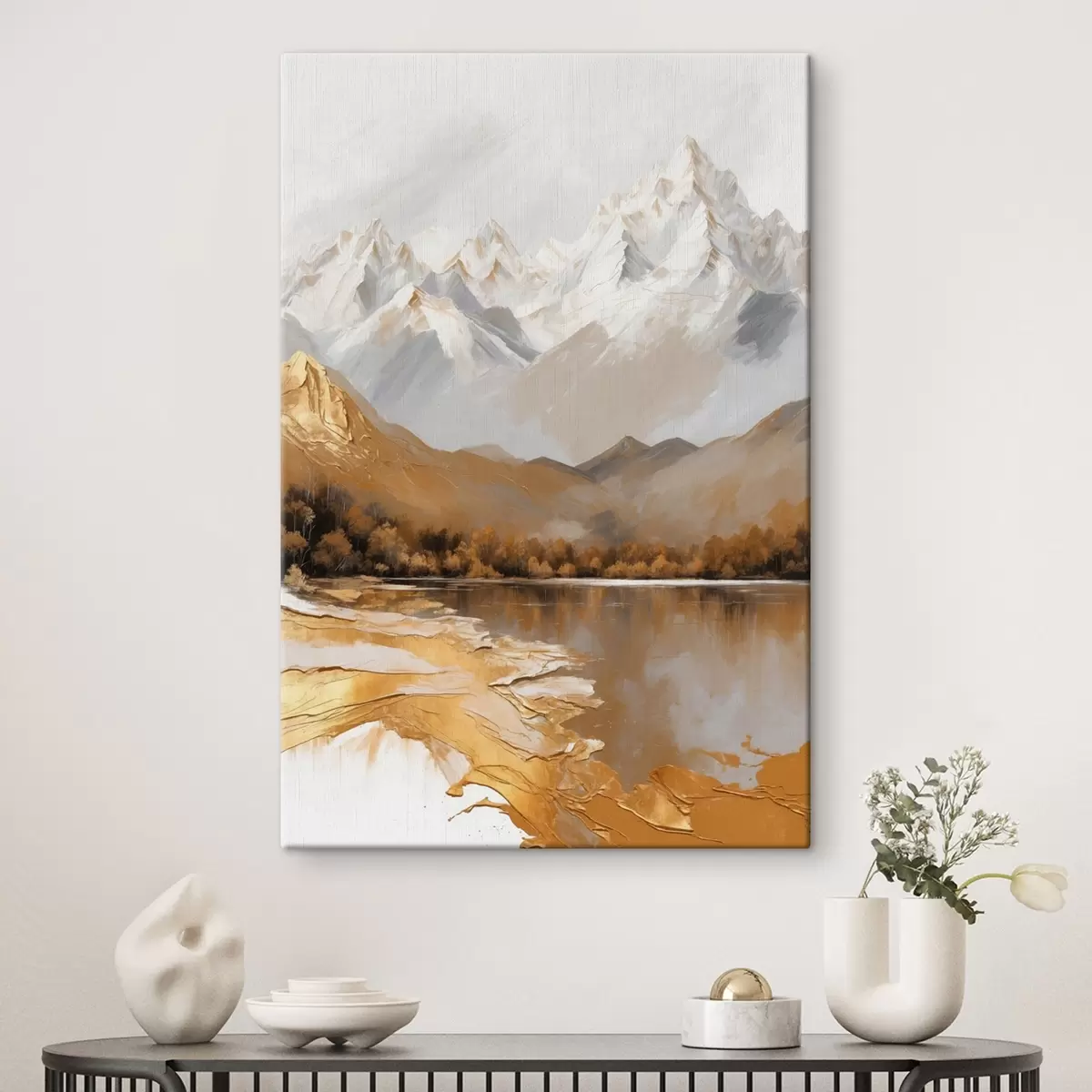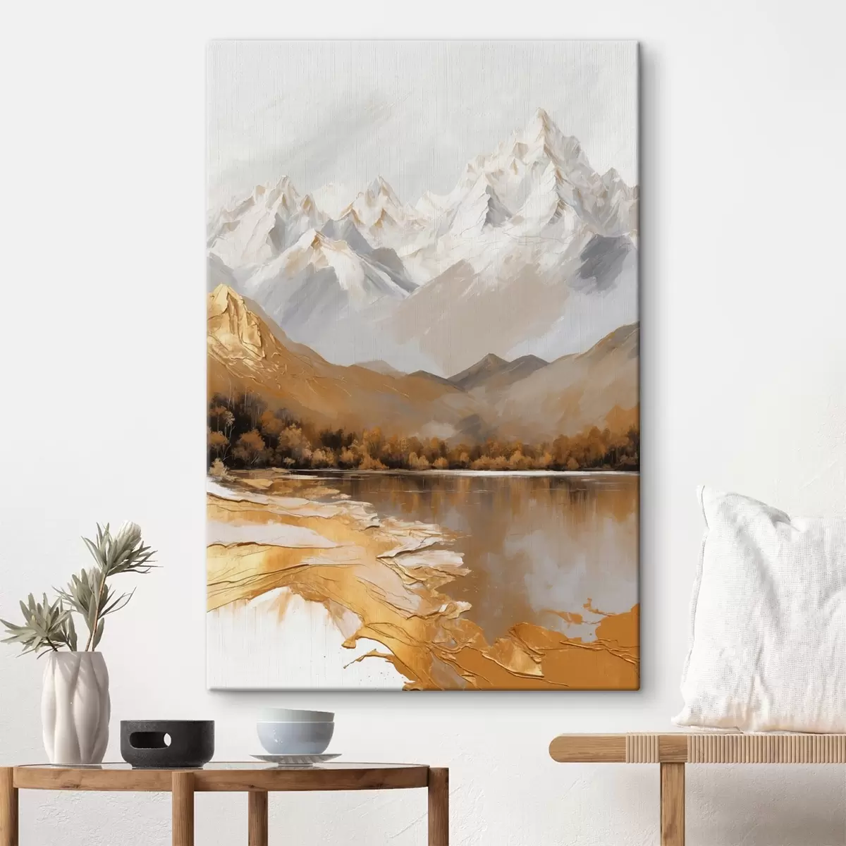 Paveikslas Kalnų kraštovaizdis su šiltų spalvų ežeru Nr s44877