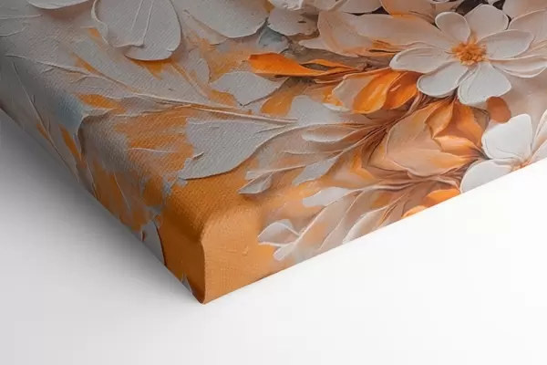 Paveikslas Baltos ir persikinės gėlės mėlyname fone su pastelinėmis spalvomis Nr s44879