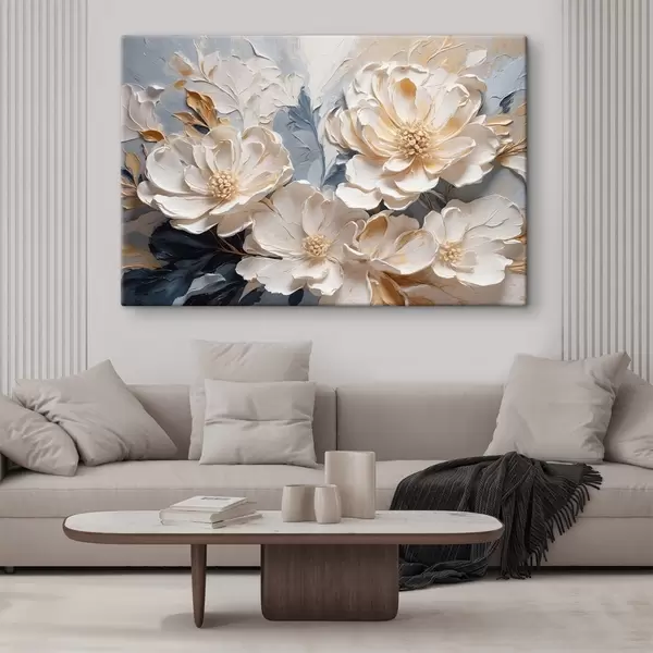 Paveikslas Tūriniai kreminiai bijūnai šviesiai mėlyname fone Nr s44880