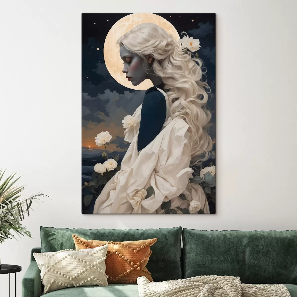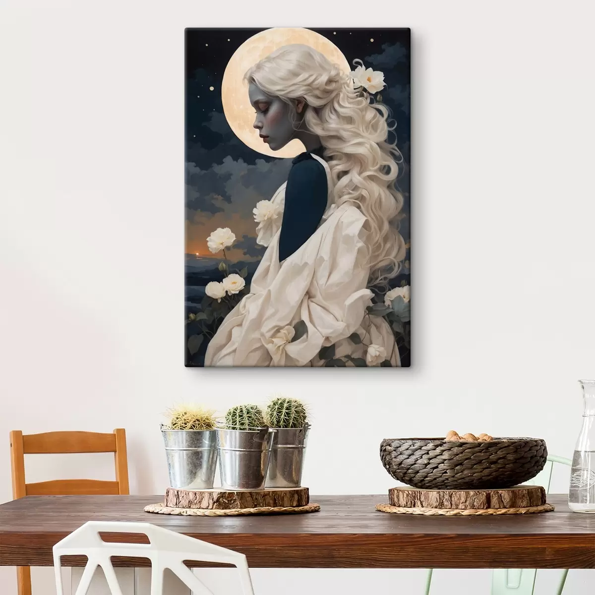 Paveikslas Mergaitės portretas su baltais plaukais ir mėnulio pilnatimi Nr s44887