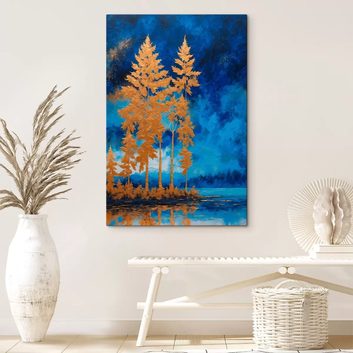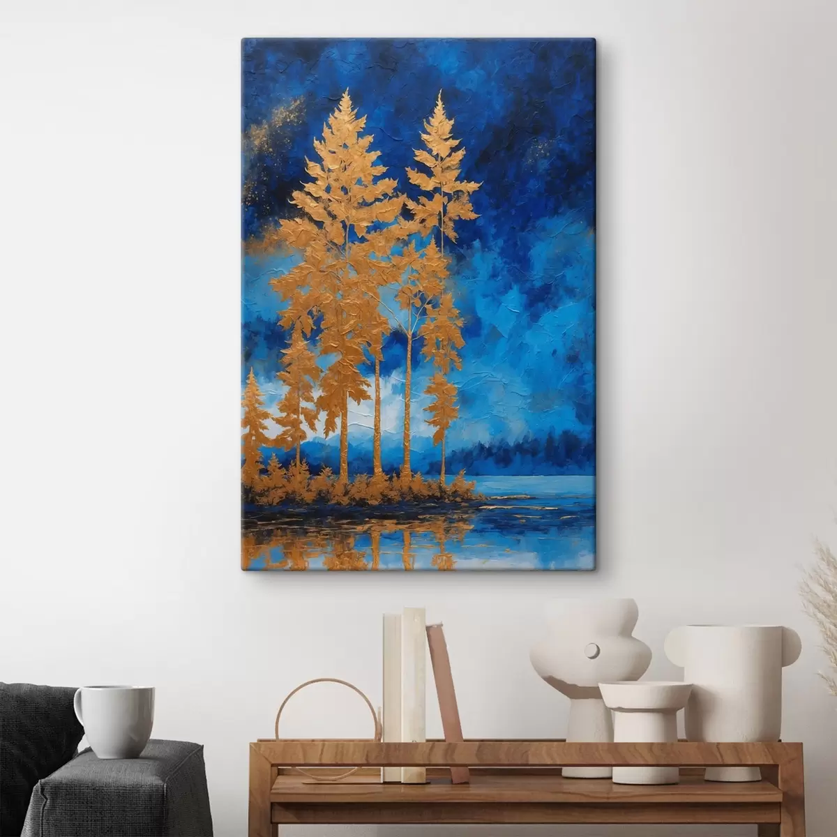 Paveikslas Medžiai nakties dangaus fone mėlynais tonais Nr s44888