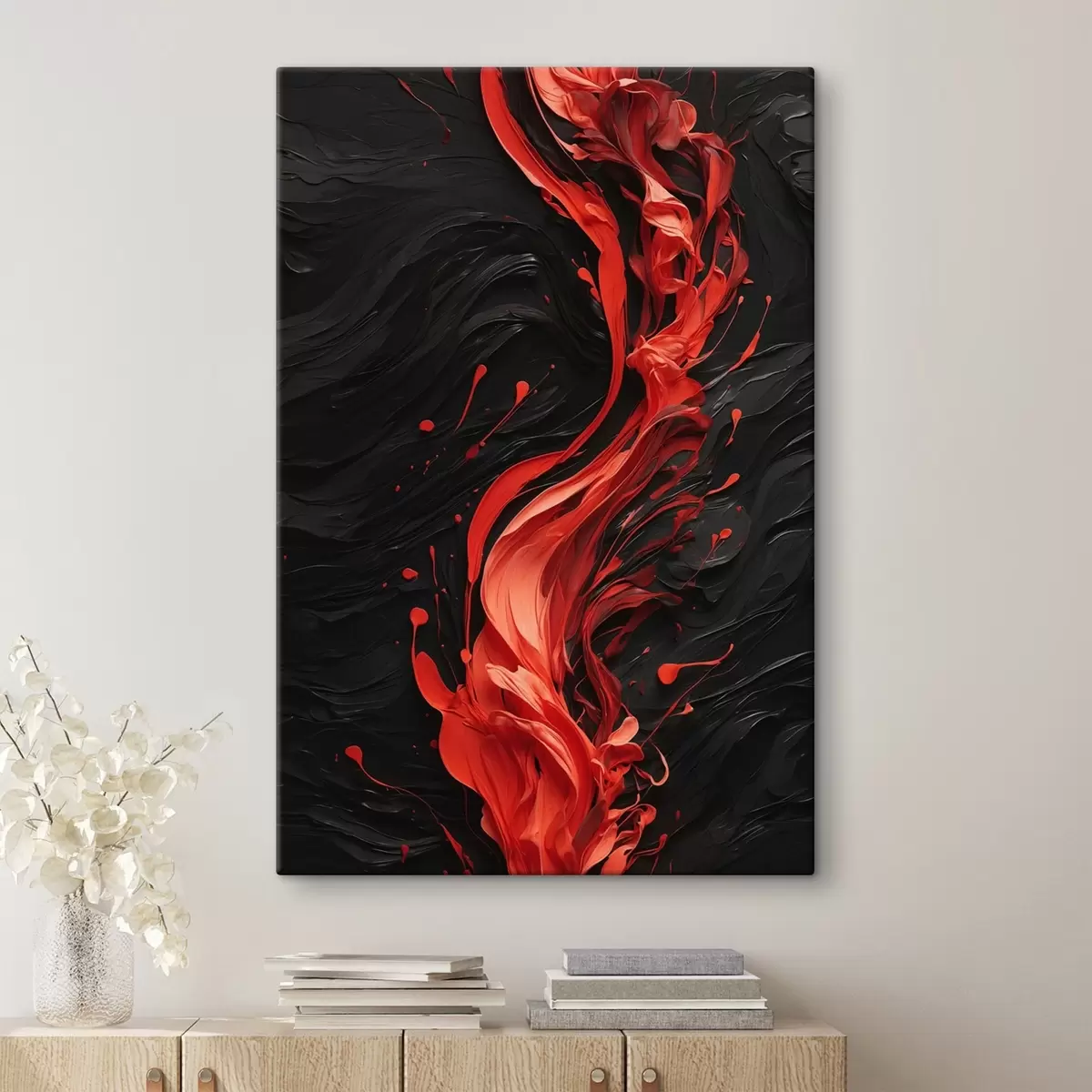 Paveikslas Raudonų dažų srautas juodame abstrakčiame fone Nr s44889