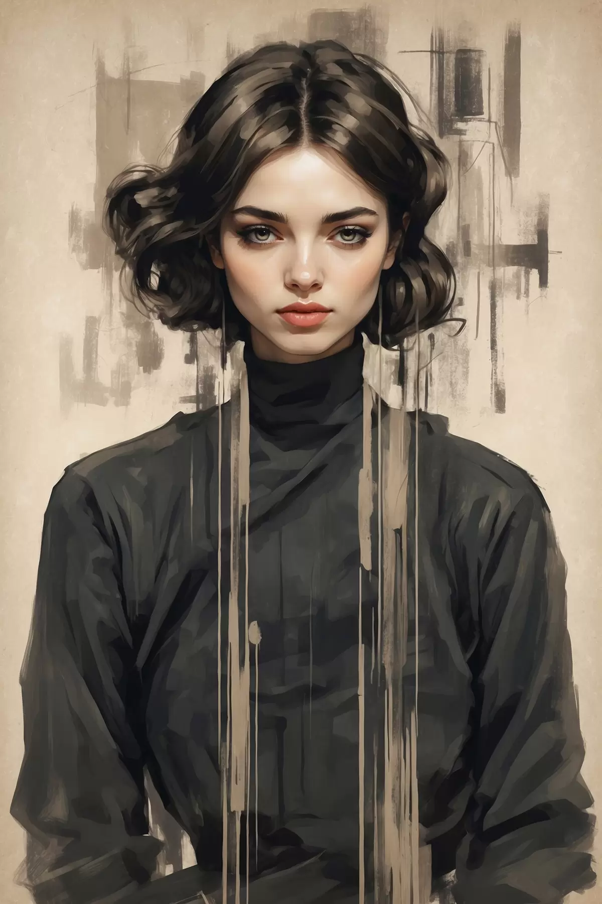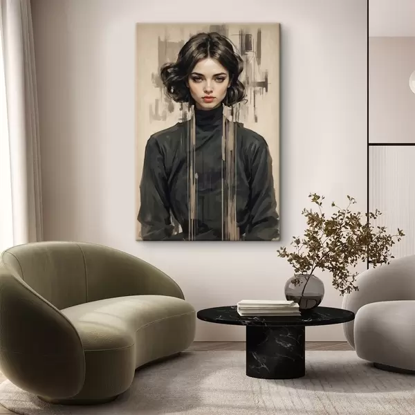Paveikslas Moters trumpais tamsiais plaukais portretas abstrakčiame fone Nr s44890