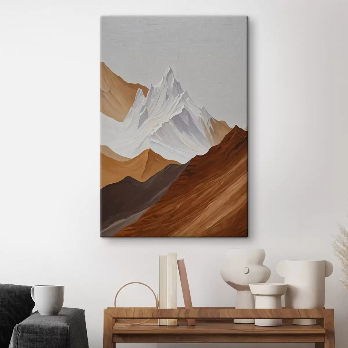 Paveikslas Geometrinis kalnų kraštovaizdis rudais ir baltais tonais Nr s44896