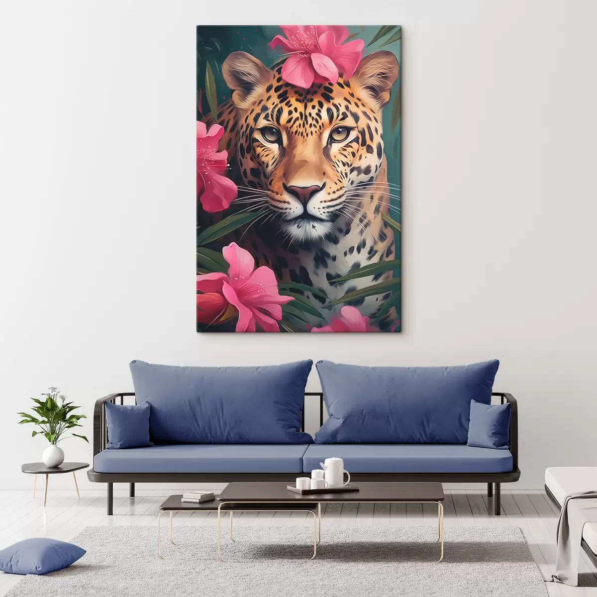 Paveikslas Leopardas tarp atogrąžų gėlių Nr s44918