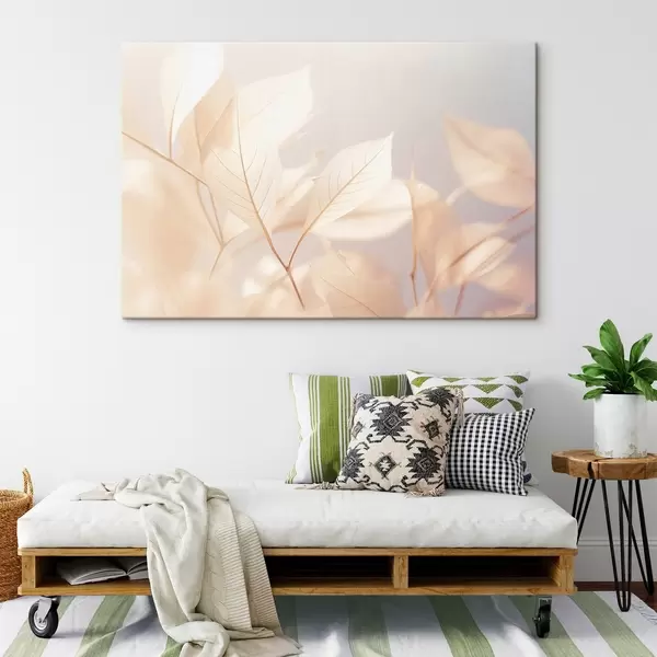 Paveikslas Permatomi lapai su įmantriais gyslų raštais, švelni pastelinių spalvų paletė, nežemiškas apšvietimas, minimalistinė kompozicija Nr s44928