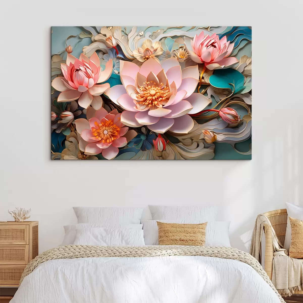 Paveikslas Rožiniai-oranžiniai lotosai 3D piešimo stiliumi Nr s44934