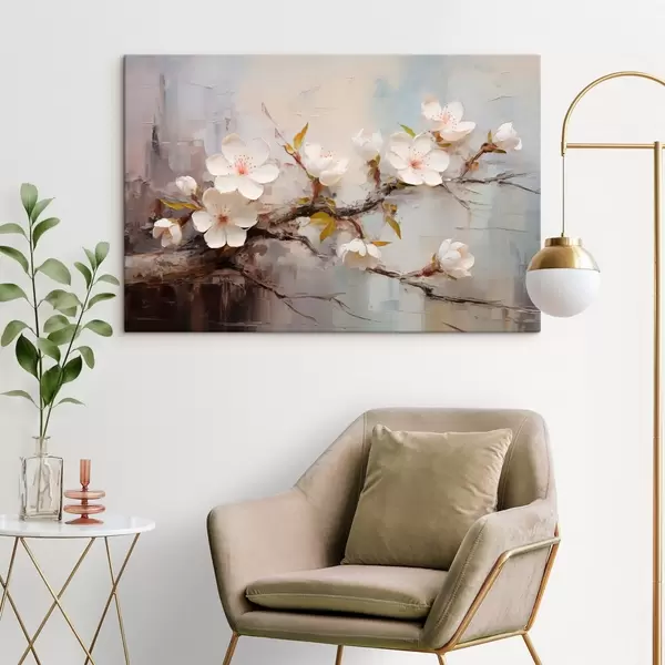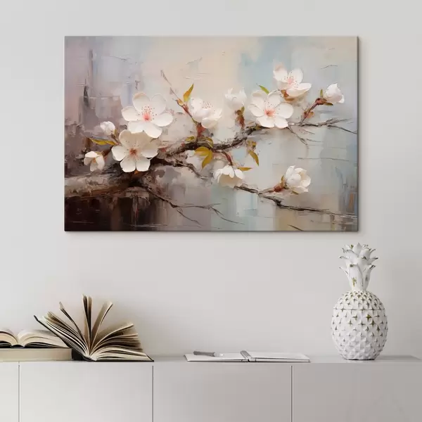 Paveikslas Baltos gėlės su rožiniais akcentais abstrakčiame fone Nr s44935