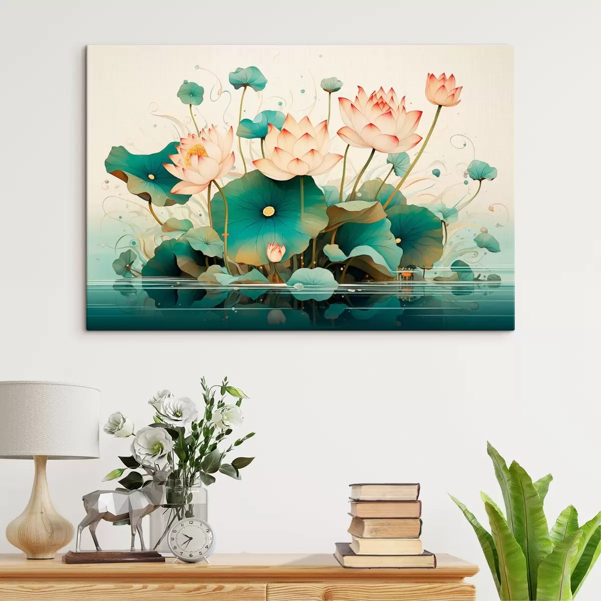Paveikslas Lotosai su dideliais lapais iliustracijų stiliumi Nr s44939