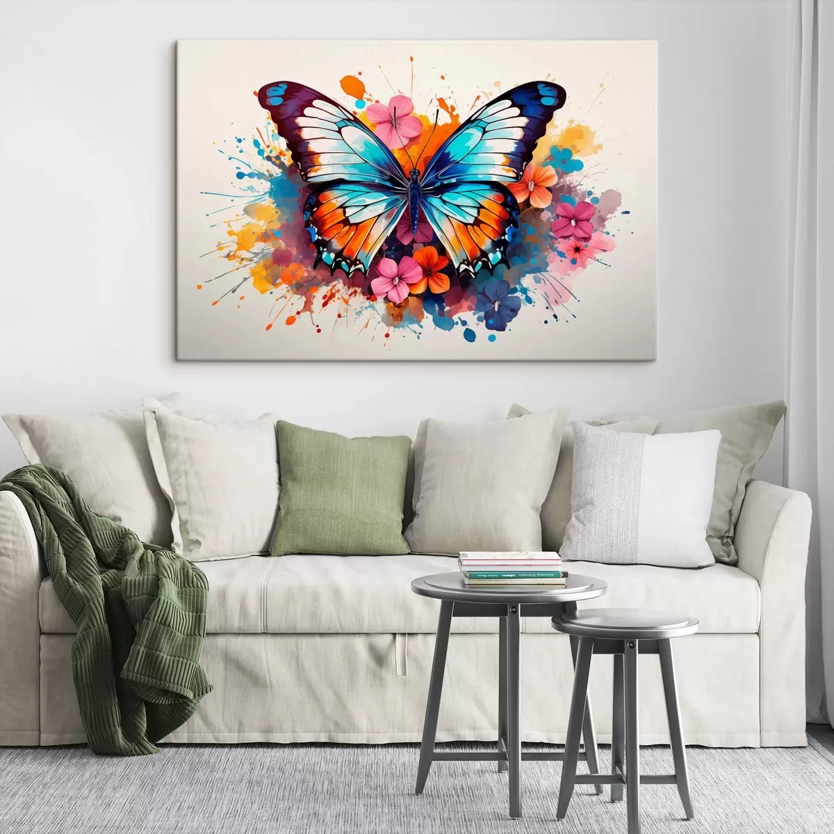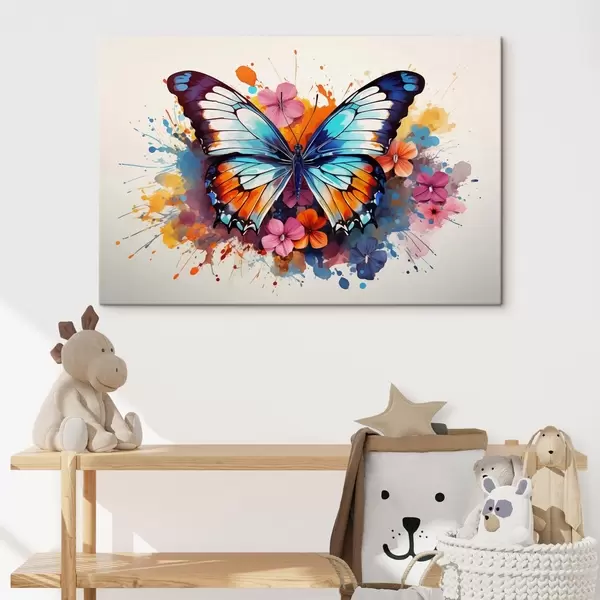 Paveikslas Dinamiška drugelio ir gėlių dėmių kompozicija meno stiliumi Nr s44943