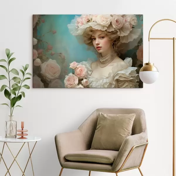 Paveikslas Elegantiška dama su skrybėle ir gėlėmis meniniu stiliumi Nr s44944