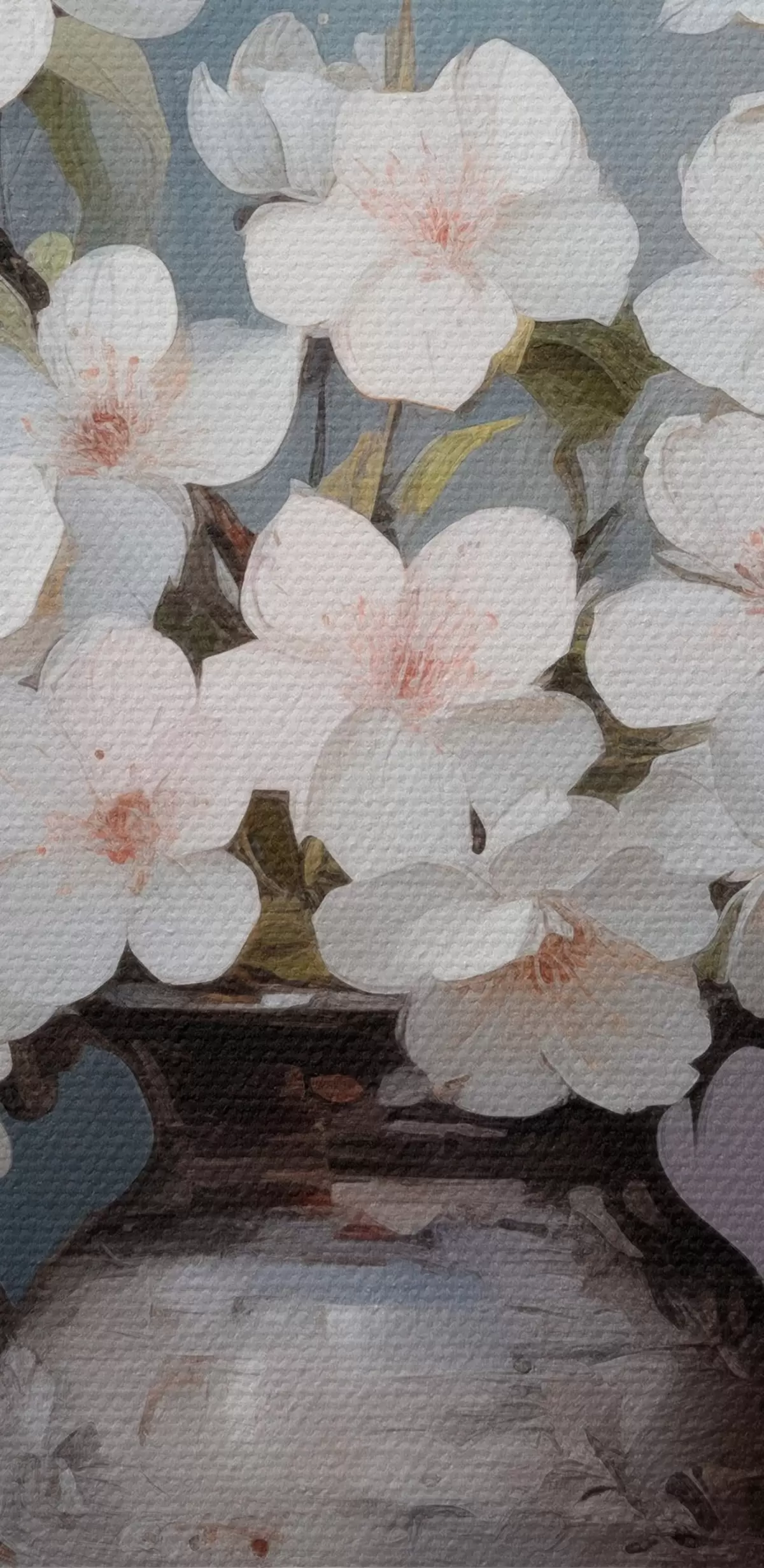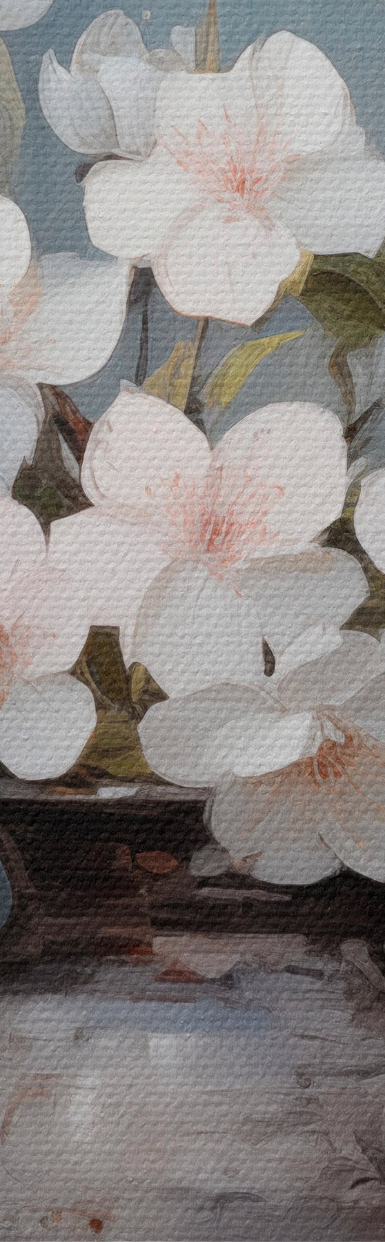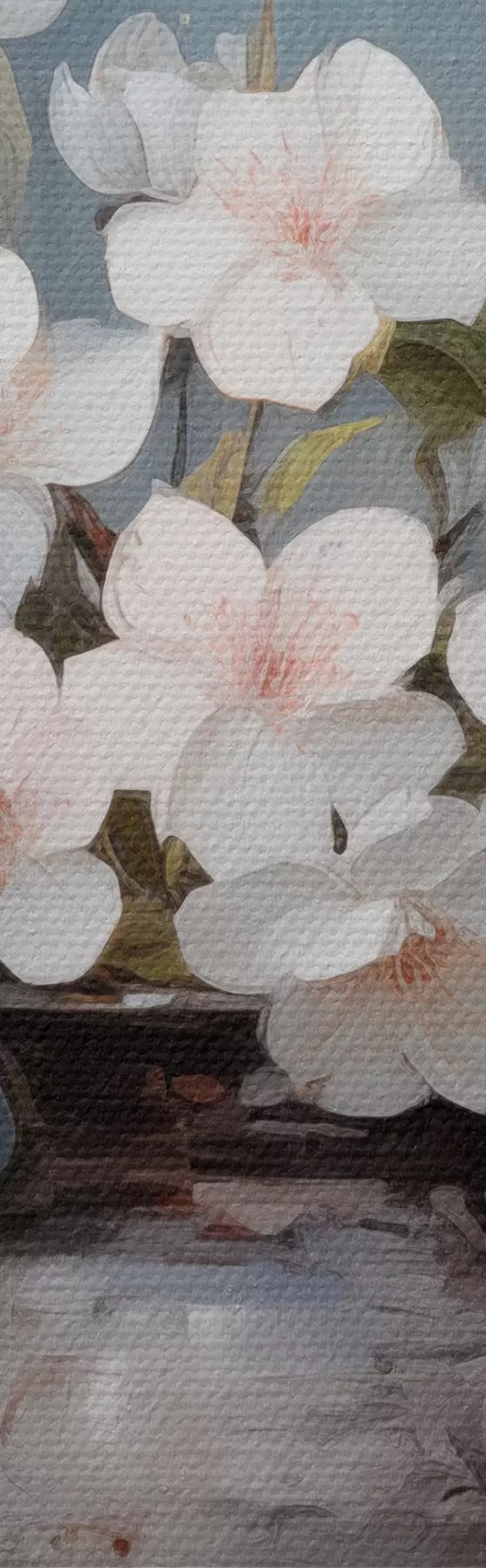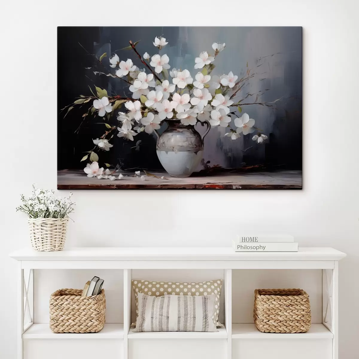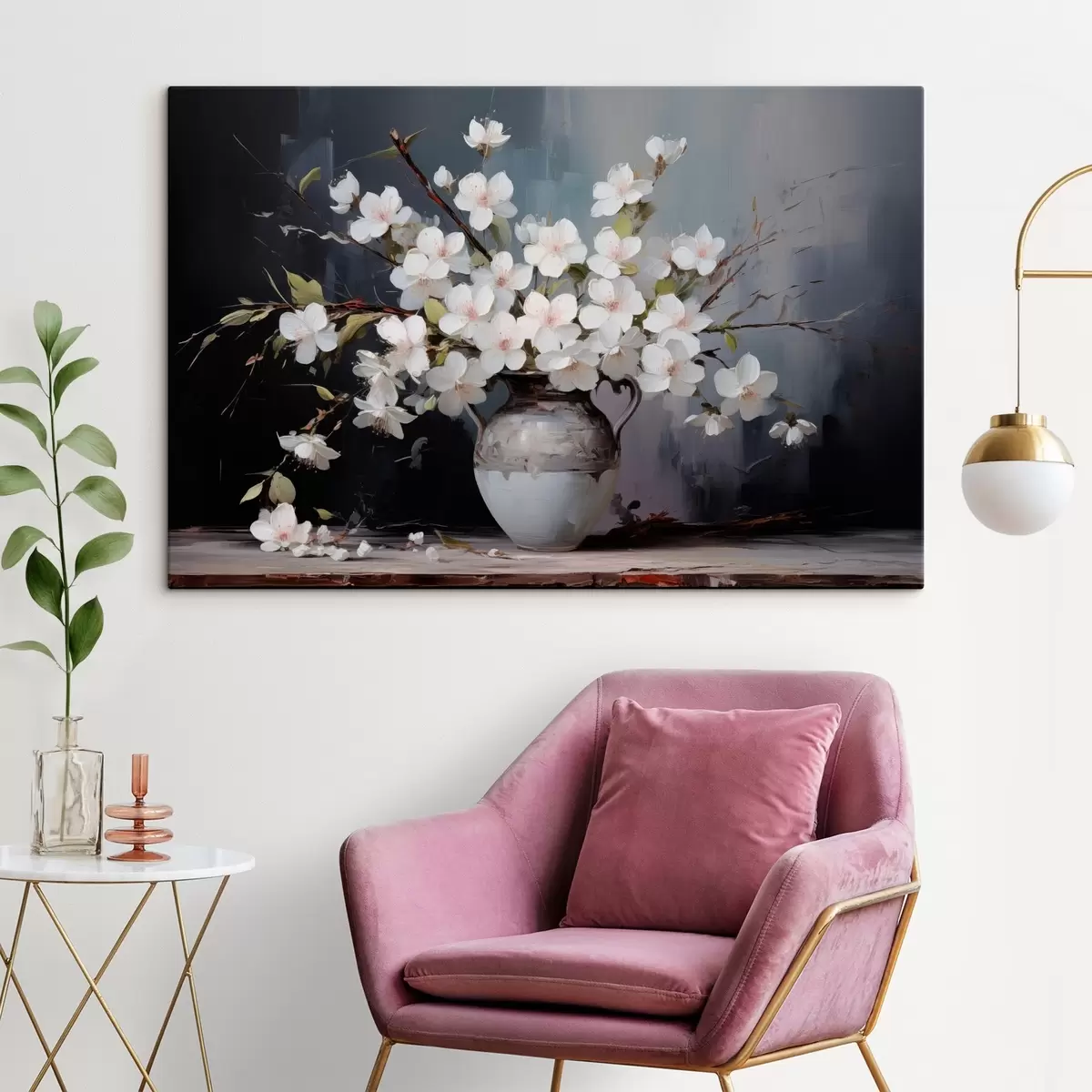 Paveikslas Žydinčios šakos vazoje tamsiame fone vaizdingu stiliumi Nr s44949
